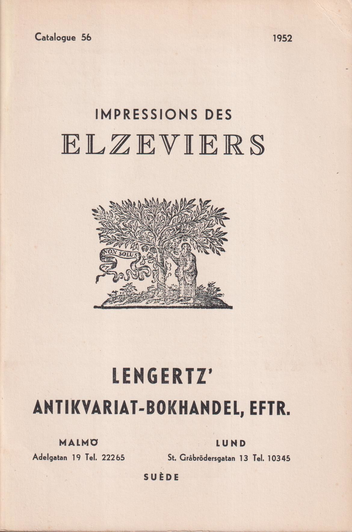 Lengertz' antikvariat-bokhandel, eftr. Catalogue 56, 1952. Impressions des Elzeviers.