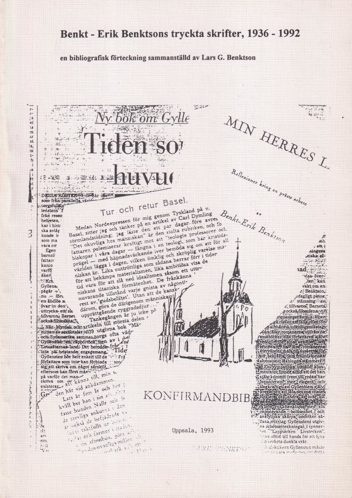 Benkt-Erik Benktsons tryckta skrifter, 1936-1992. En bibliografisk förteckning. Sammanställd av Lars G. Benktson [= omslagstitel].