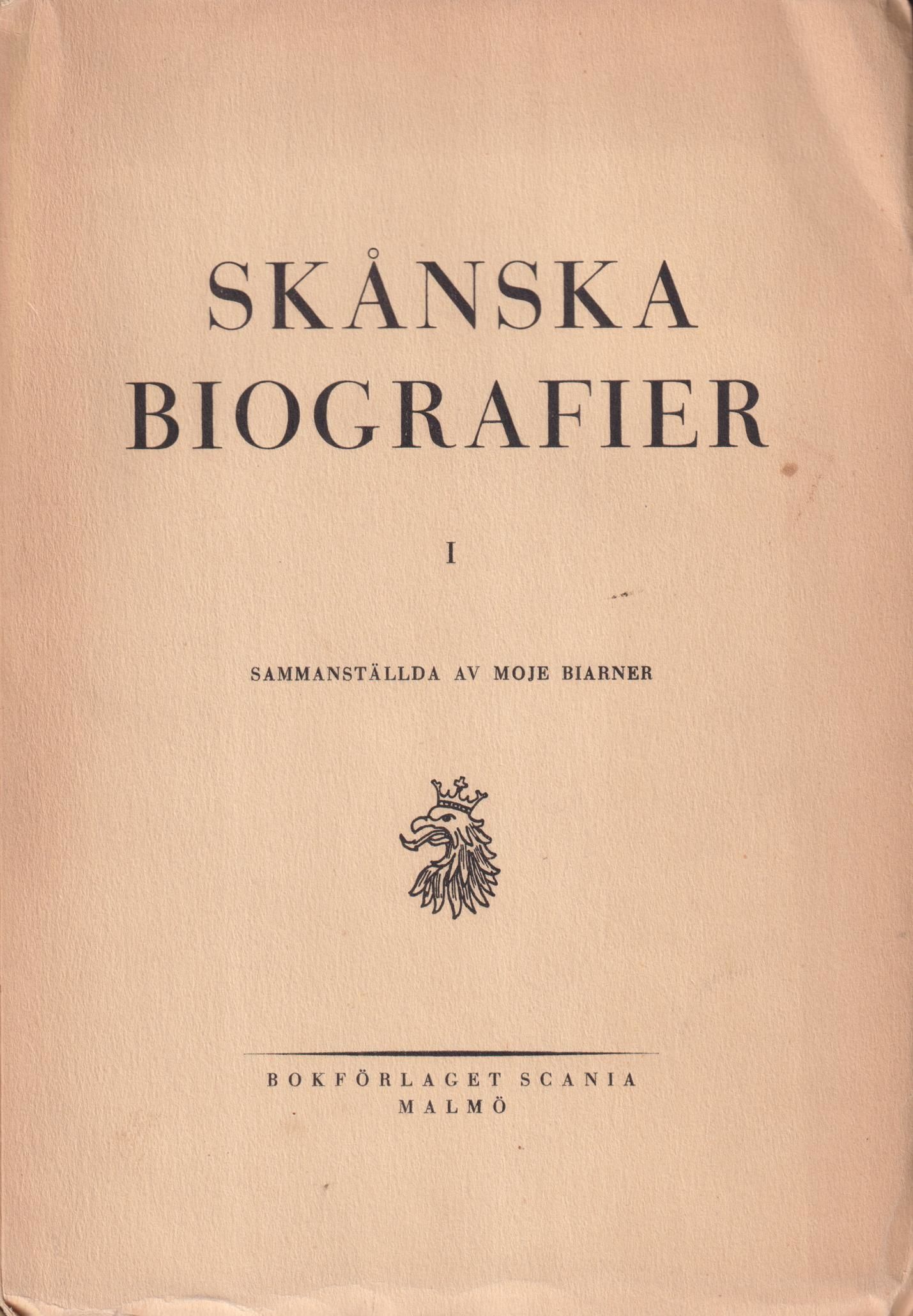 Skånska biografier I. Sammanställda av Moje Biarner. [Utg. av] Bokförlaget Scania, Malmö.