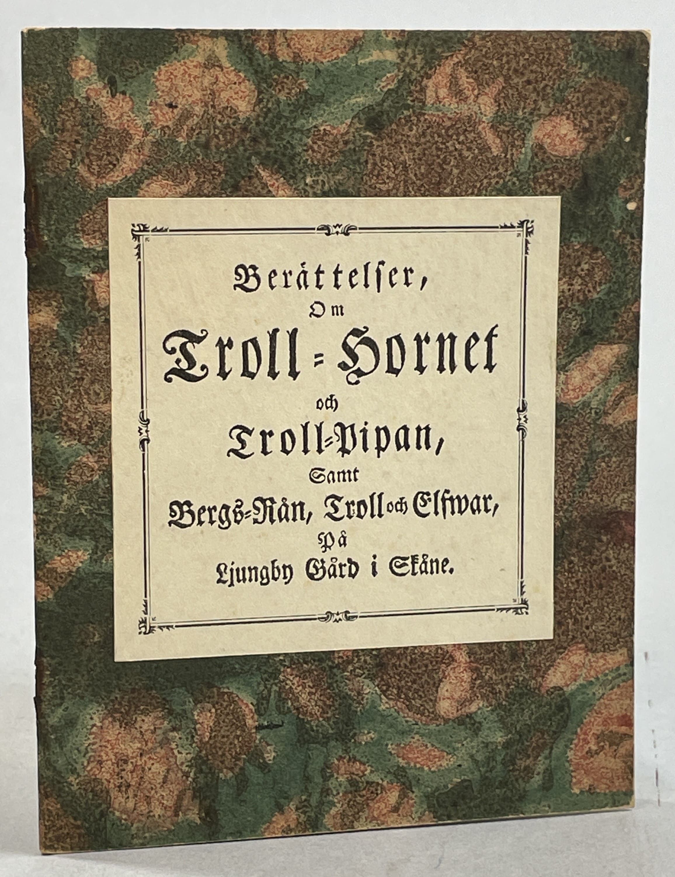 Första upplagan utkom redan 1705Omslagstitel ‘Berättelser, om Troll-hornet och Troll-pipan, samt Bergs-rån, Troll och Elfwar, på Ljungby Gård i Skåne’.