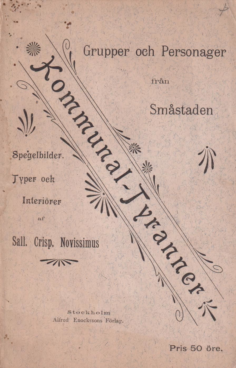 Kommunal-tyranner. Grupper och personager från småstaden. Spegelbilder, typer och interiörer af Sall. Crisp. Novissimus. [Utg. av] Alfred Enocksons förlag.