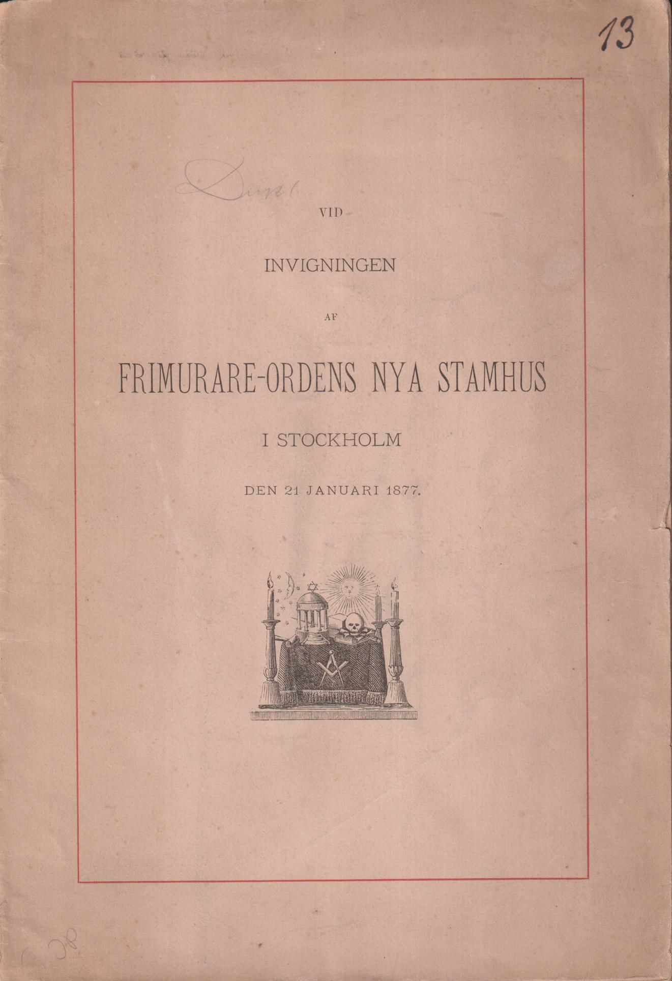Vid invigningen af Frimurare-Ordens nya stamhus i Stockholm de 21 januari 1877.