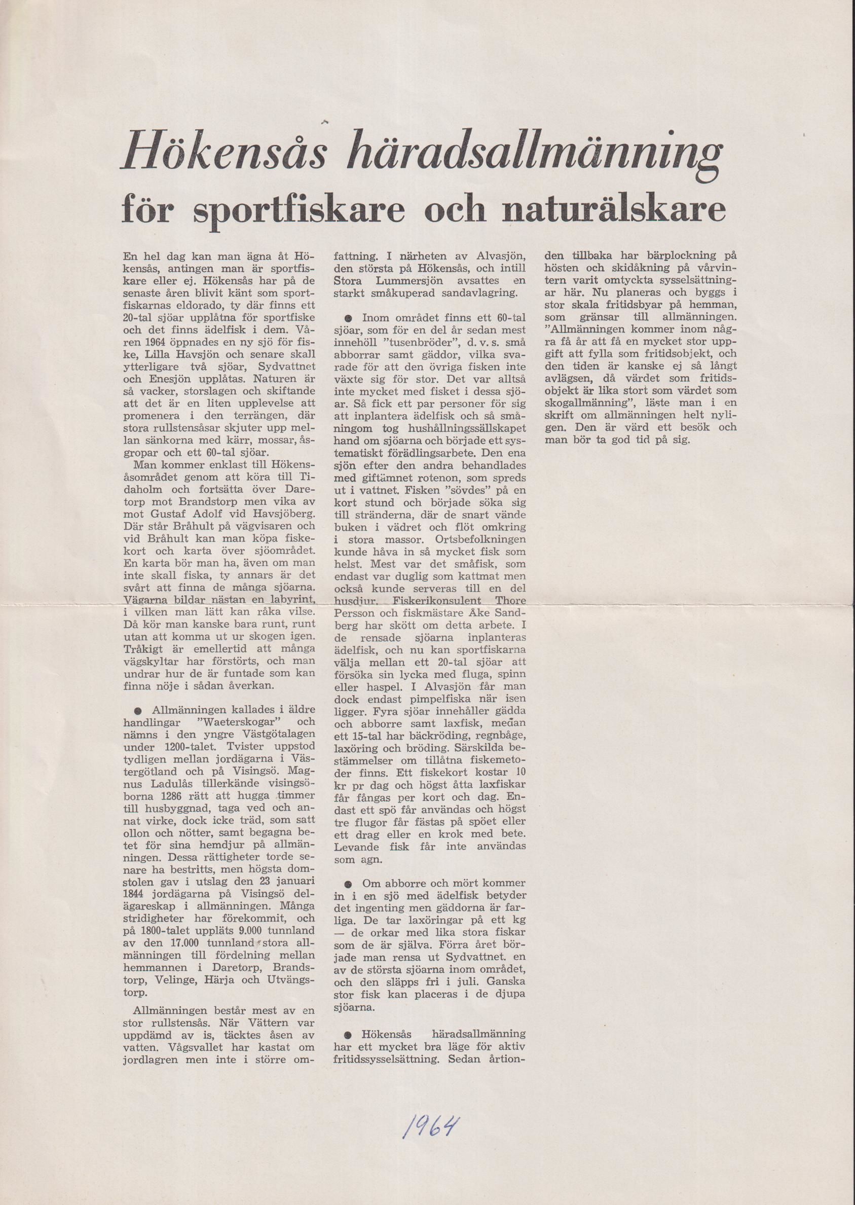 Hökenås häradsallmäning för sportfiskare och naturälskare [= rubrik].