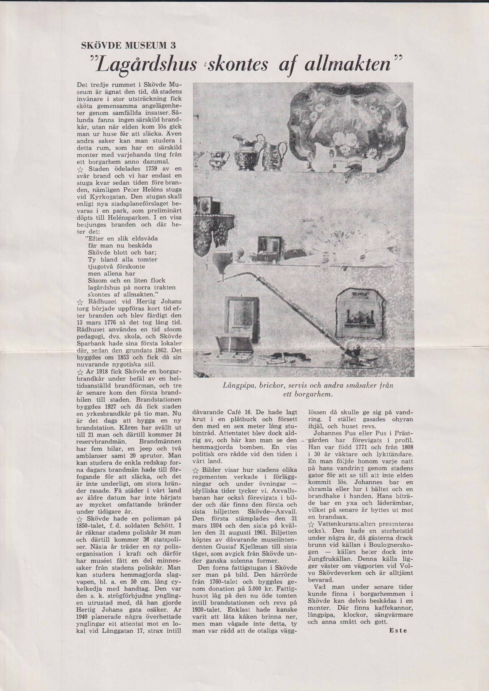 Skövde museum 3. Särtryck ur ‘Skaraborgs Läns Annonsblad’.
