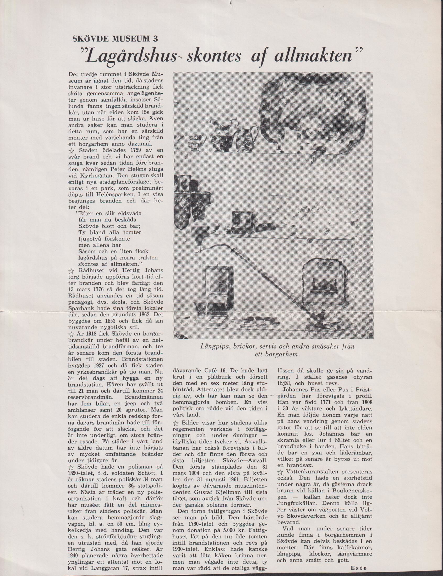 Skövde museum 3. Särtryck ur ‘Skaraborgs Läns Annonsblad’.