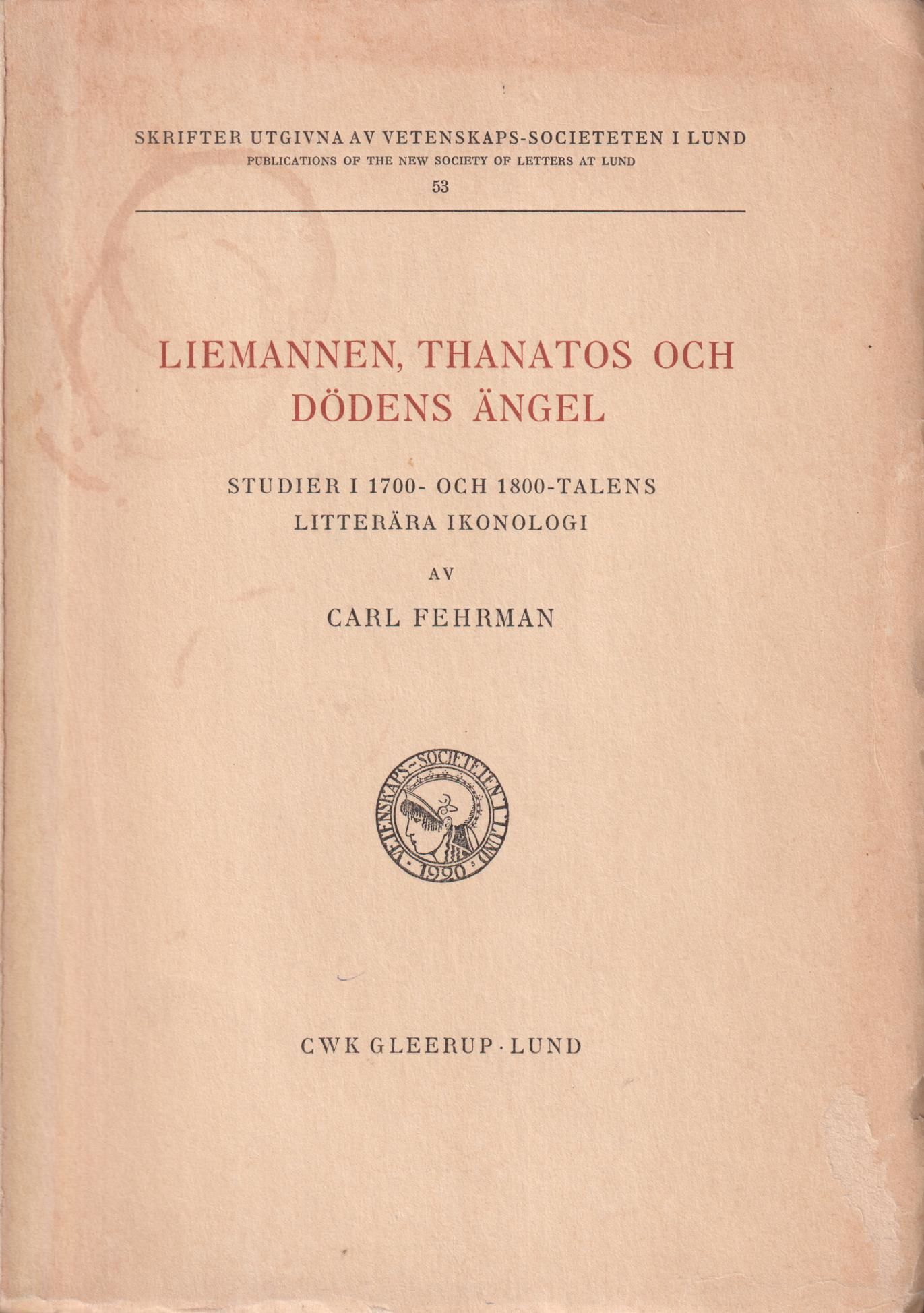 Liemannen, Thanatos och dödens ängel. Studier i 1700- och 1800-talens litterära ikonologi. [Utg. av] CWK Gleerup.