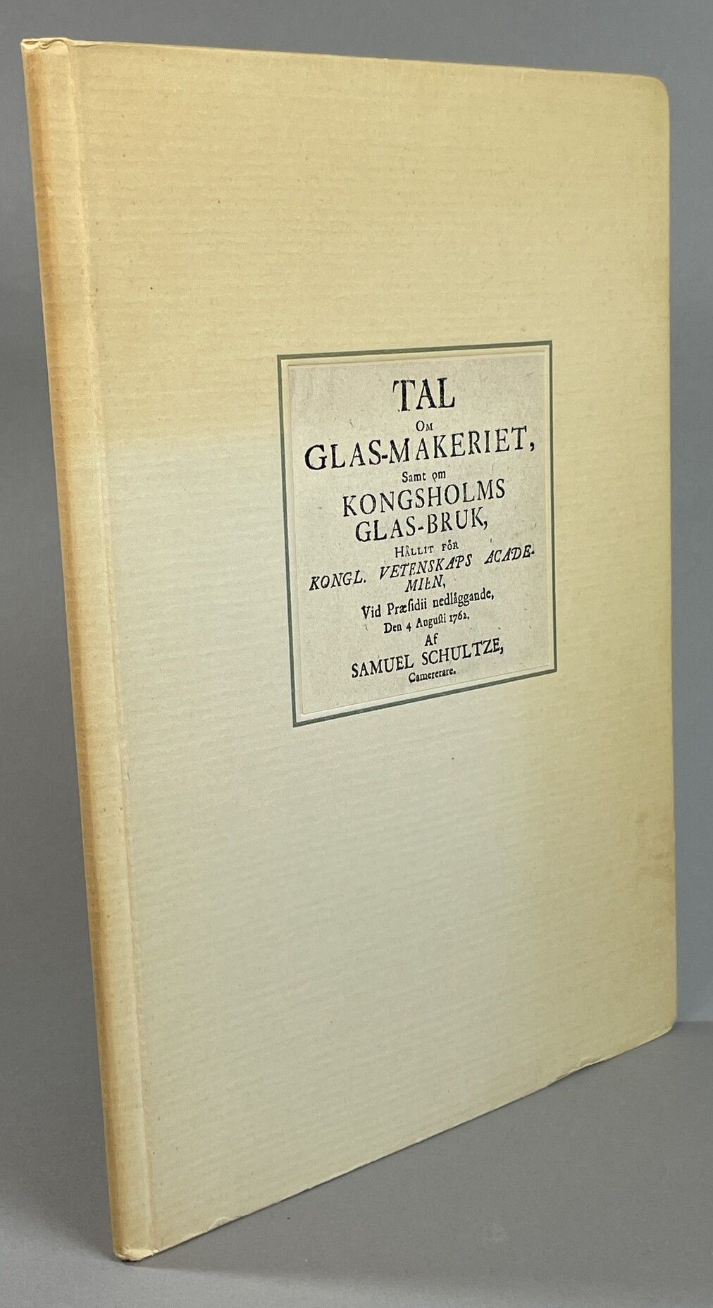 Tal om glas-makeriet, samt om Kongsholms glas-bruk, hållit för Kongl. Vetenskaps academien, vid præsidii nedläggande, den 4 Augusti 1762. [Utg. av Y.W. Anderberg].