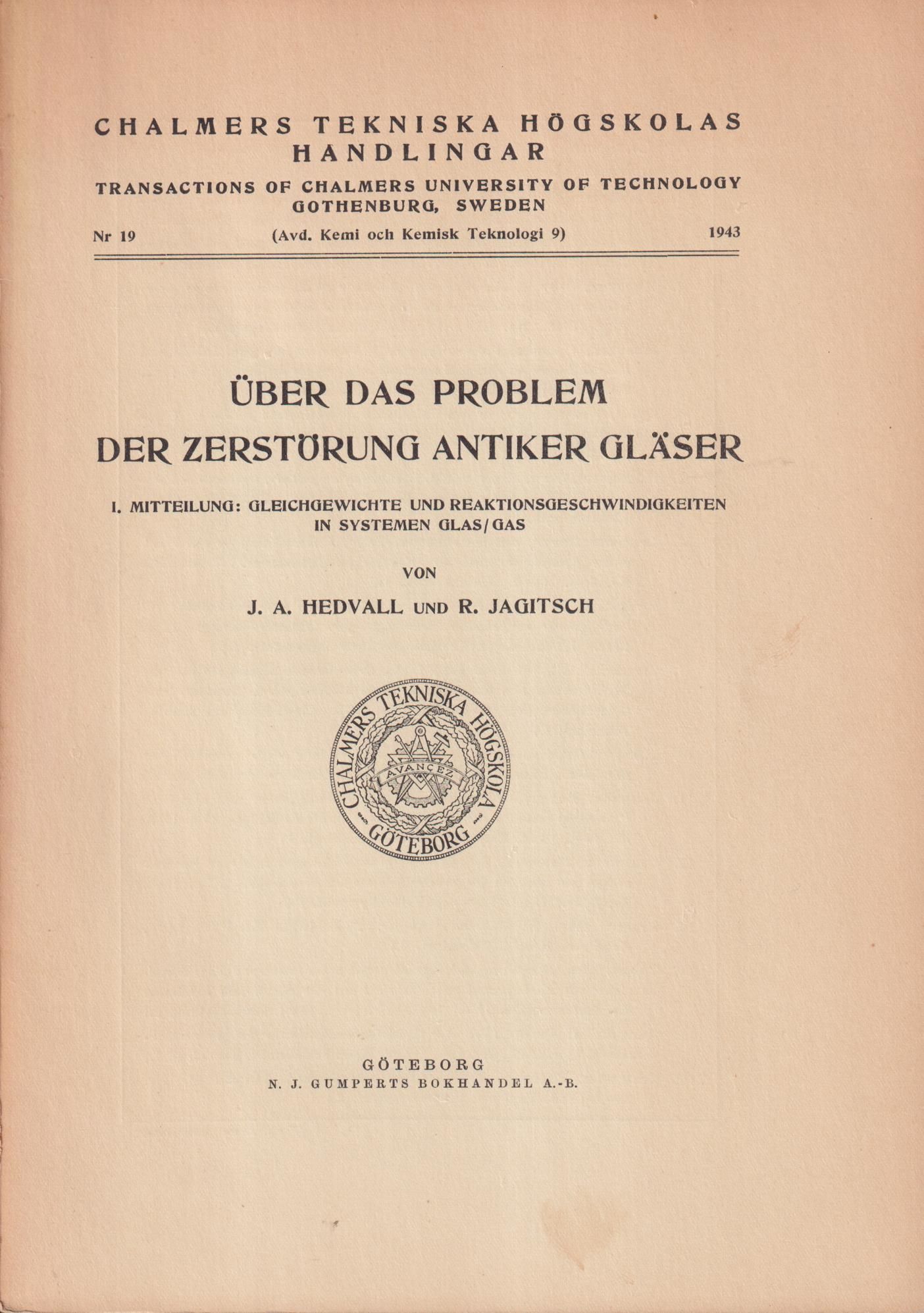 Über das Problem der Zerstörung antiker Gläser. 1. Mitteilung: Gleichgewichte und Reaktionsgeschwindigkeiten in Systemen Glas/Gas. [Utg. av] N.J. Gumperts Bokhandel.