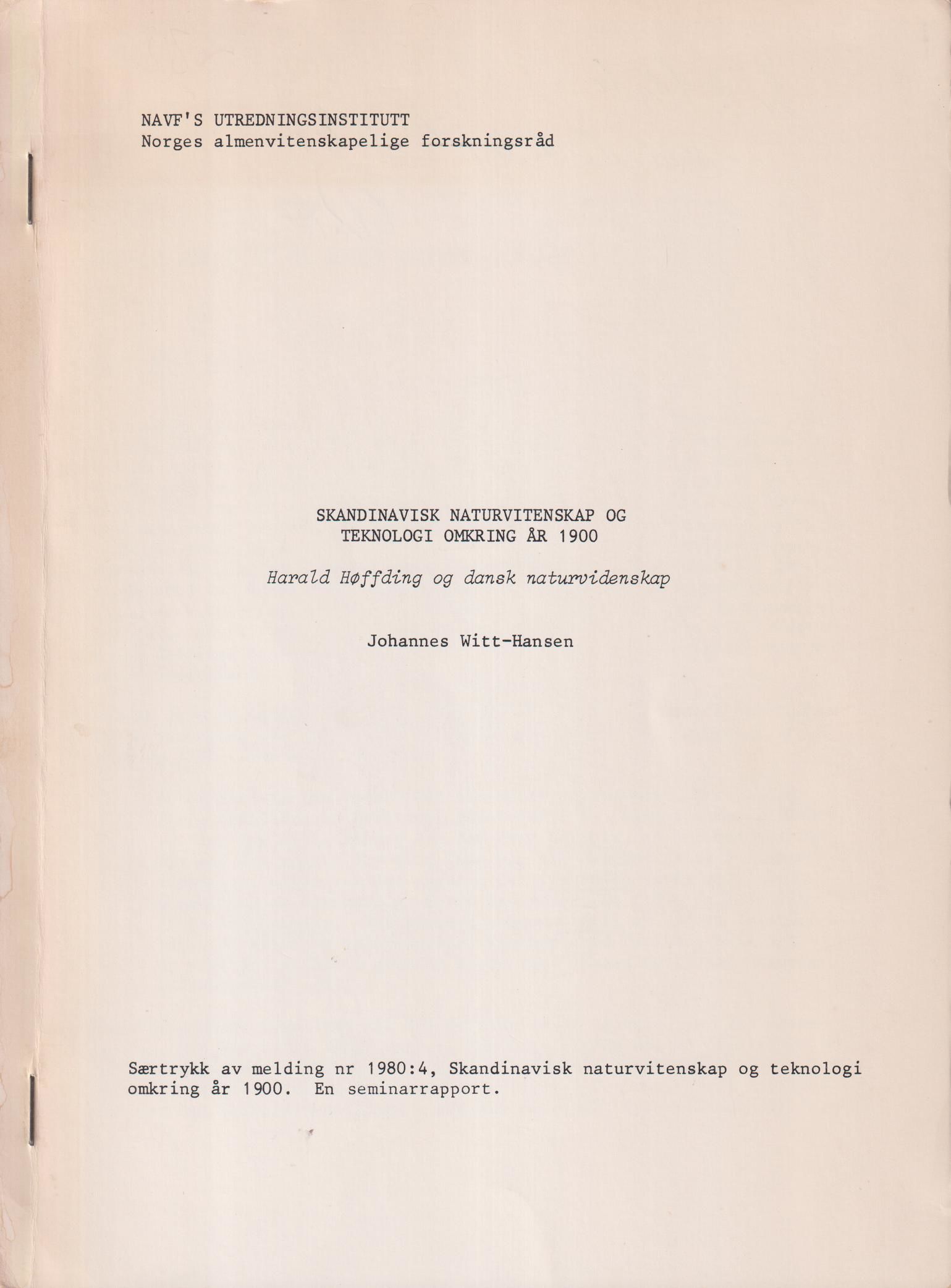 Särtryck ur ‘Melding nr 1980:4. Skandinavisk naturvitenskap og teknologi omkring år 1900. En seminarrapport’.