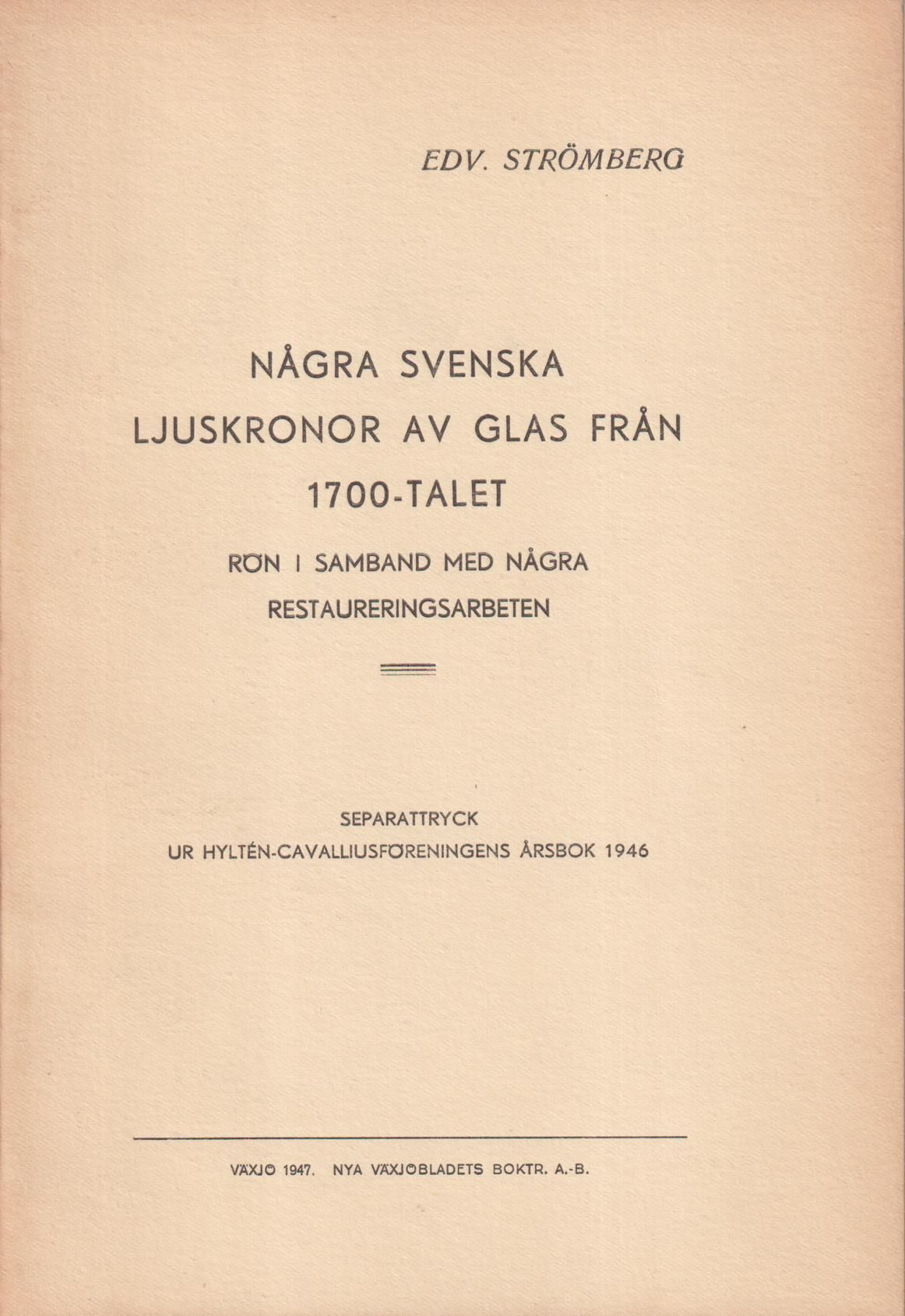 Några svenska ljuskronor av glas från 1700-talet. Rön i samband med några restaureringsarbeten. [+ J.E. Anderbjörk: Edvard Strömberg. In memoriam].