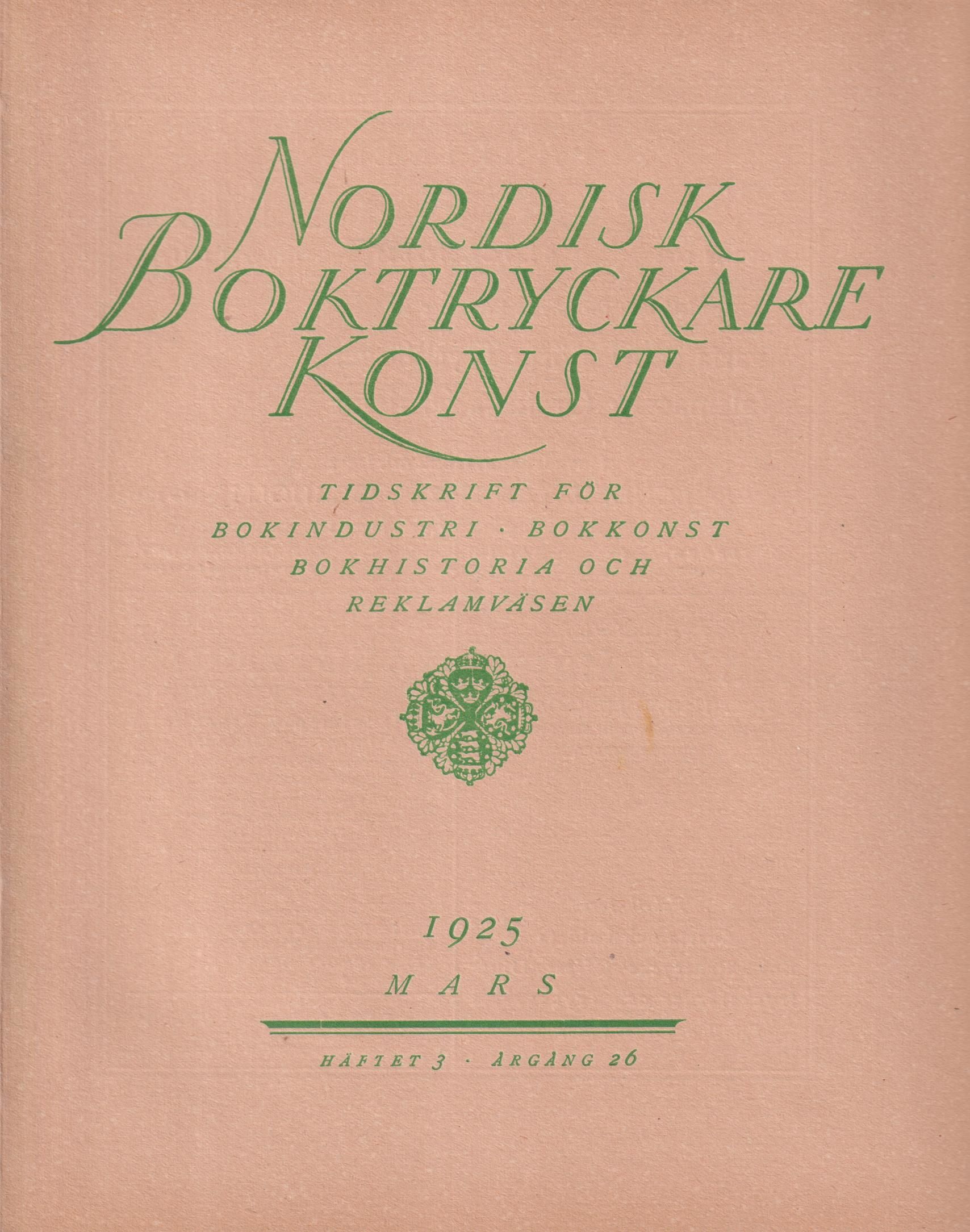 Nordisk boktryckarekonst 1925 [Häftet 3]. Tjugusjätte årg. Marshäftet. Tidskrift för Bokindustri. Bokkonst. Bokhistoria och Reklamväsen. Under medverkan af framstående fackmän.
