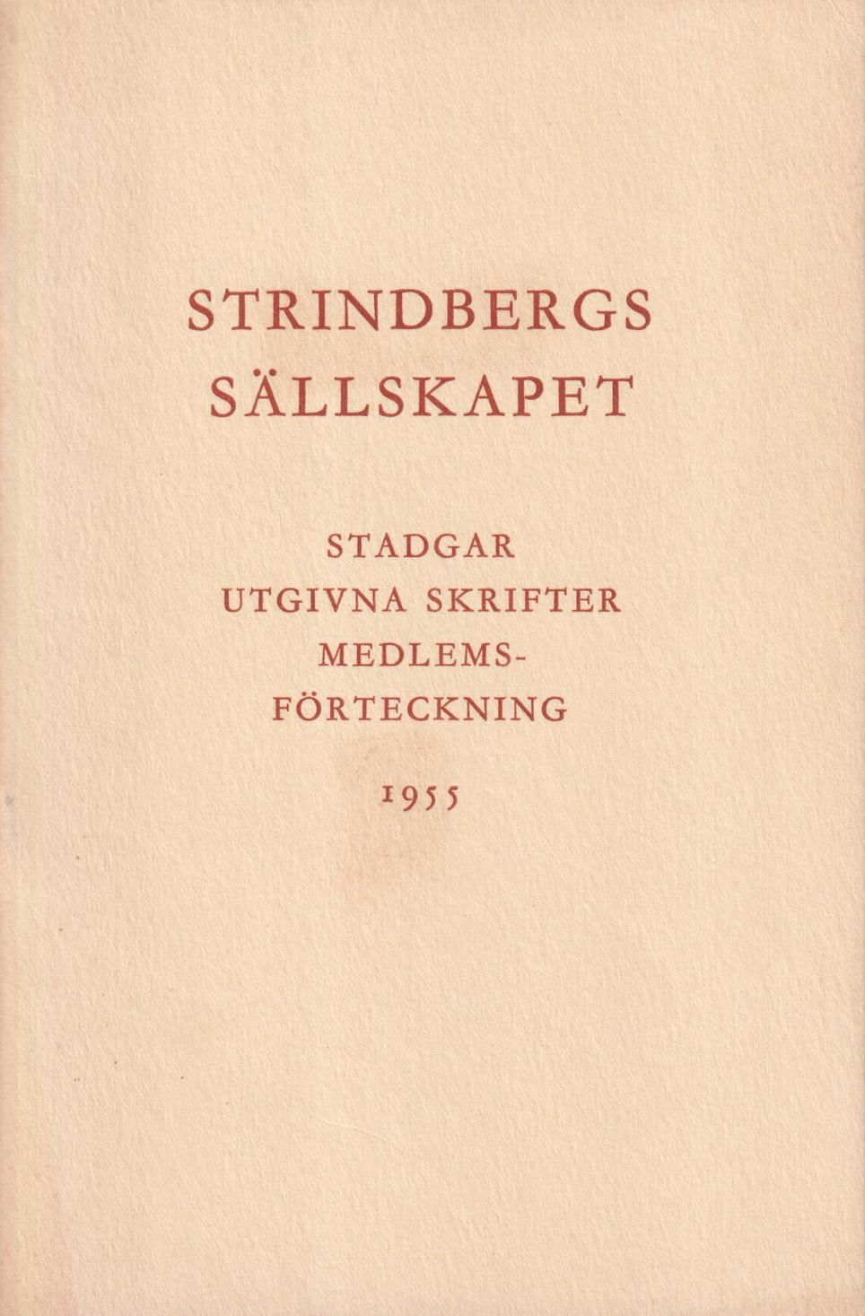 Strindbergssällskapet. Stadgar. Utgivna skrifter. Medlemsförteckning 1955. + Strindbergssällskapet. En presentation och en inbjudan.