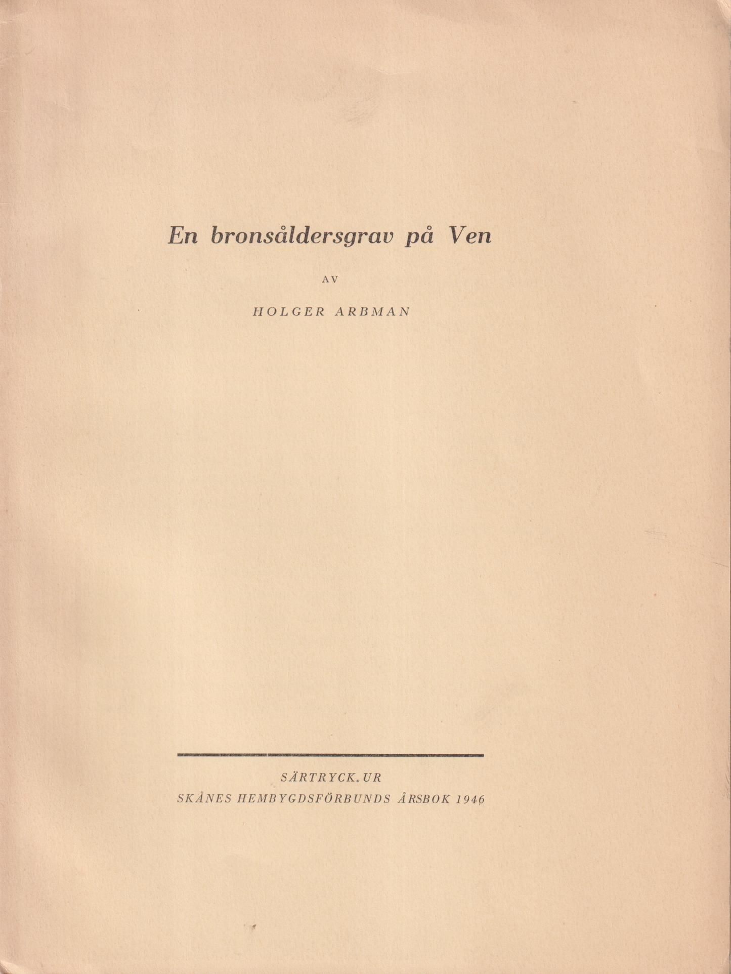 En bronsåldersgrav på Ven [= rubrik].