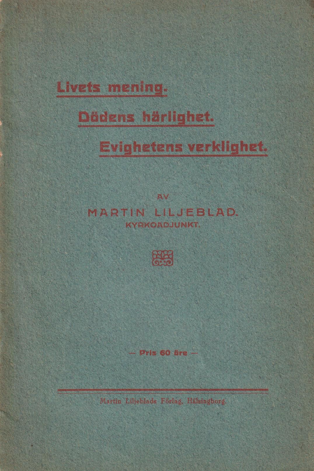 Livets mening. Dödens härlighet. Evighetens verklighet. [Utg. av] Martin Liljeblads förlag.