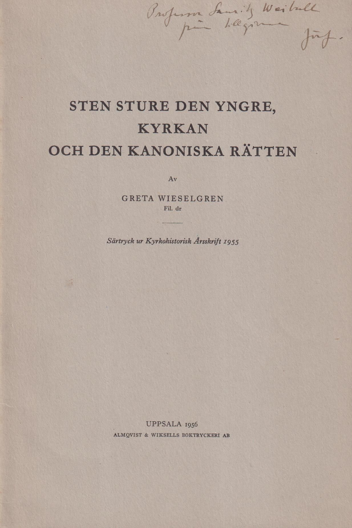 Sten Sture den yngre, kyrkan och den kanoniska rätten [= rubrik].