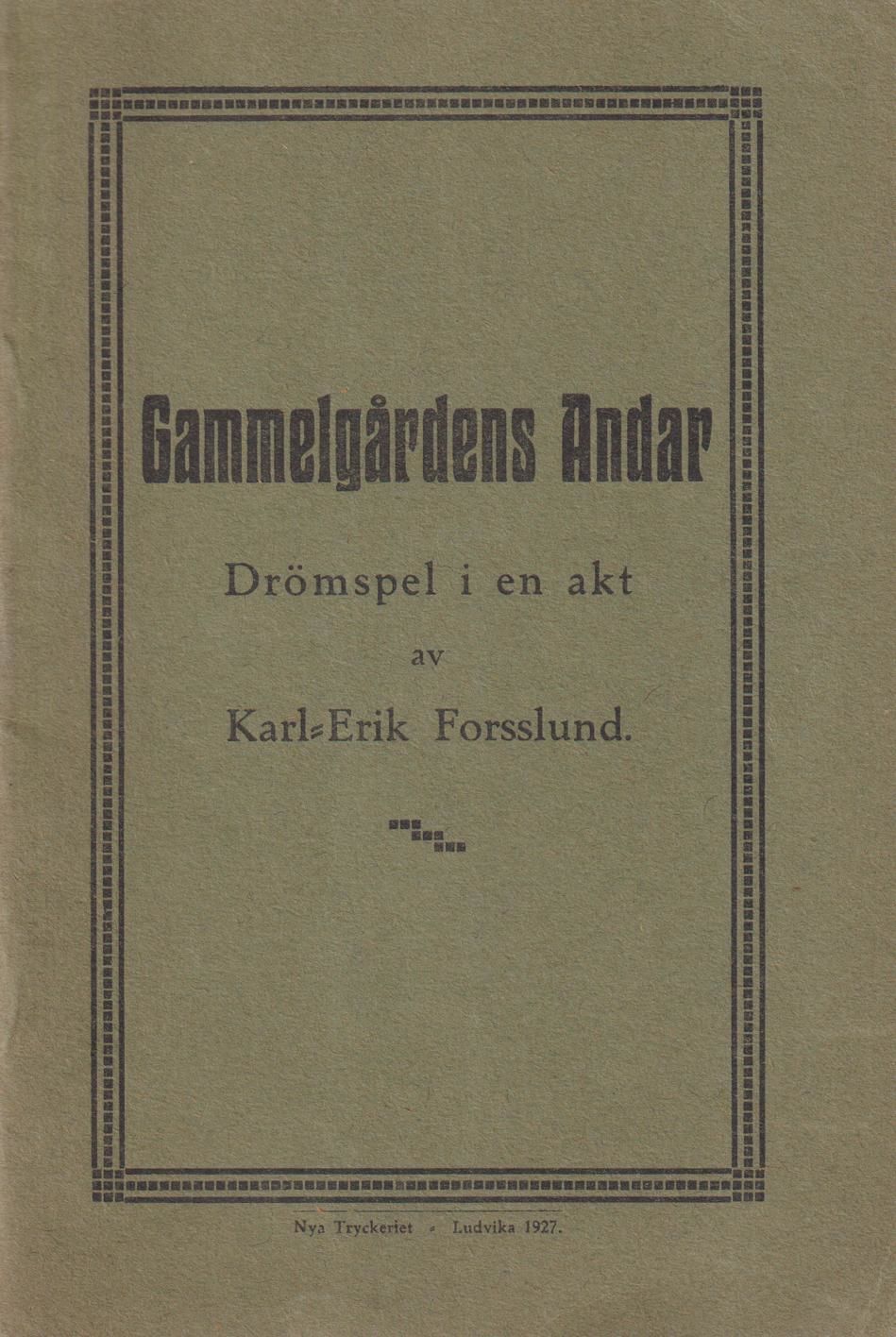 Gammelgårdens andar. Drömspel i en akt. [Utg. av Ludvikabygdens fornminnes- och hembygdsförening].