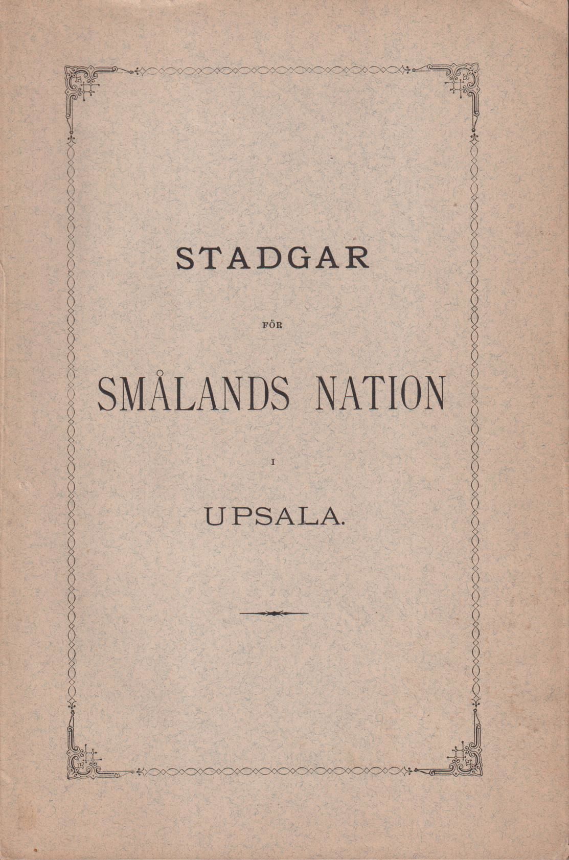 Stadgar för Smålands nation i Upsala. Af det mindre akademiska konsistoriet stadfästa den 10 februari 1886.