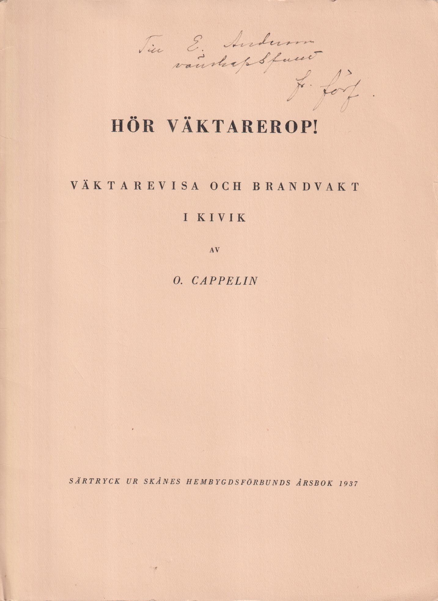 Hör väktarerop! Väktarevisa och brandvakt i Kivik av O. Cappelin.