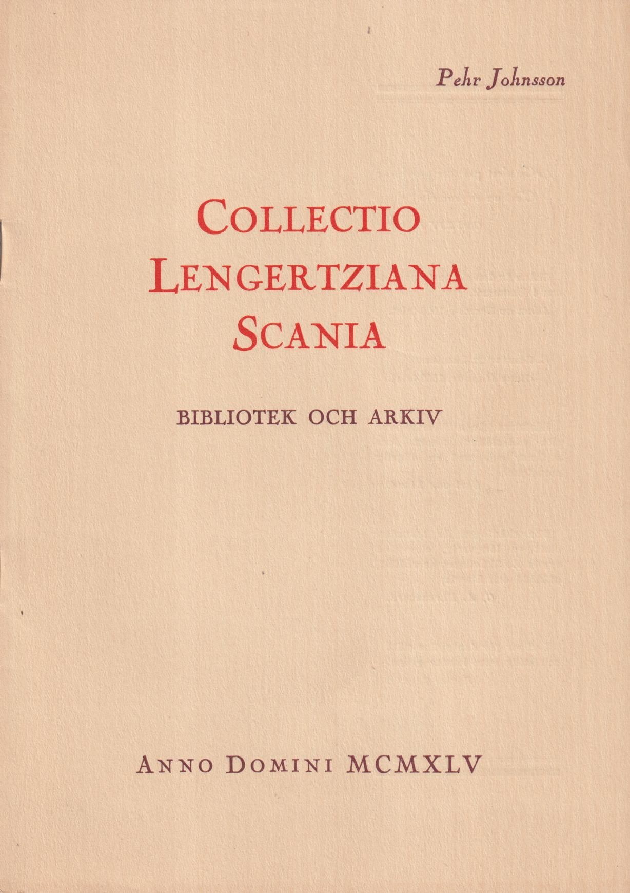 Collectio Lengertziana Scania. Bibliotek och arkiv. Hundra meter skånsk litteratur. [Utg. av] Bokförlaget Scania.