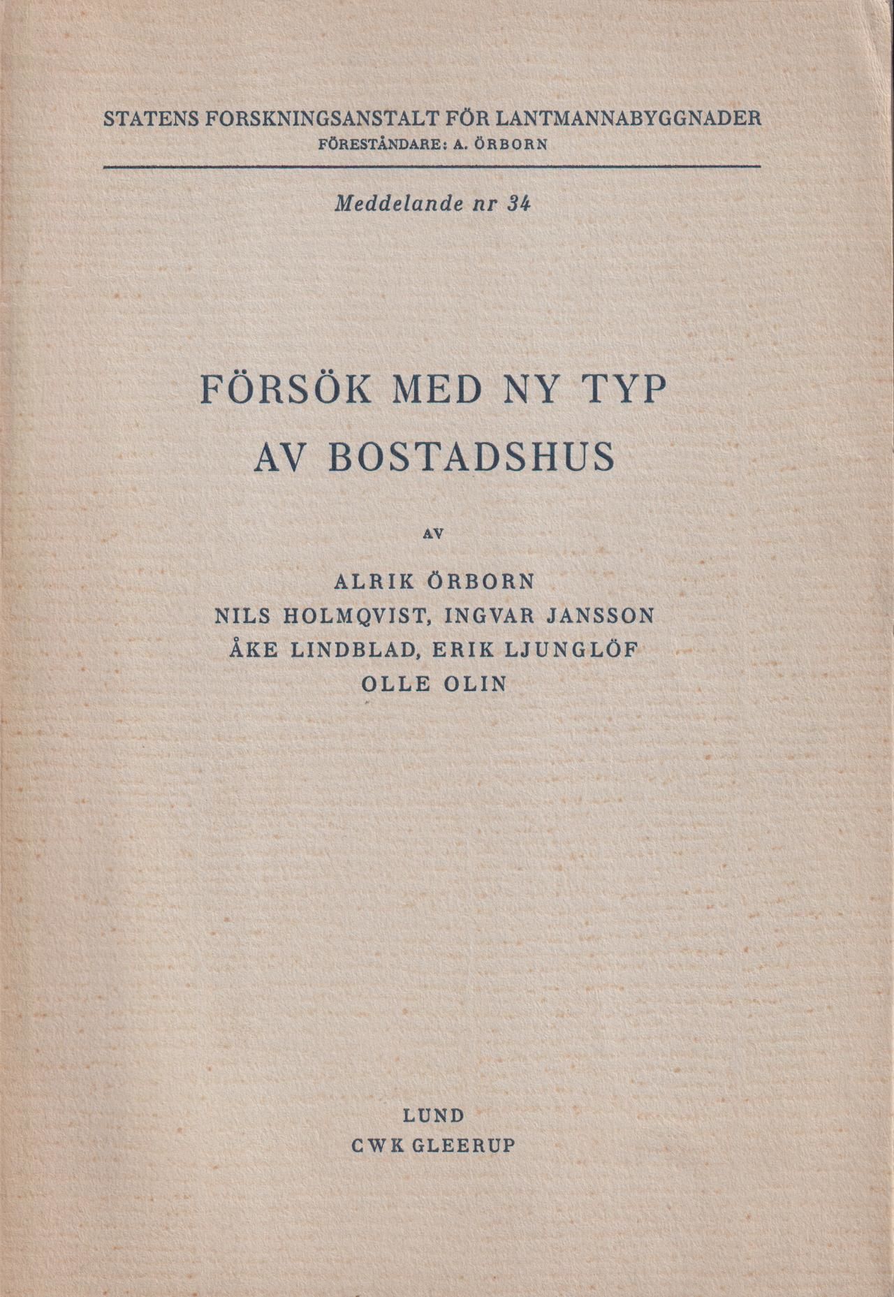 Försök med ny typ av bostadshus. [Utg. av] CWK Gleerup.