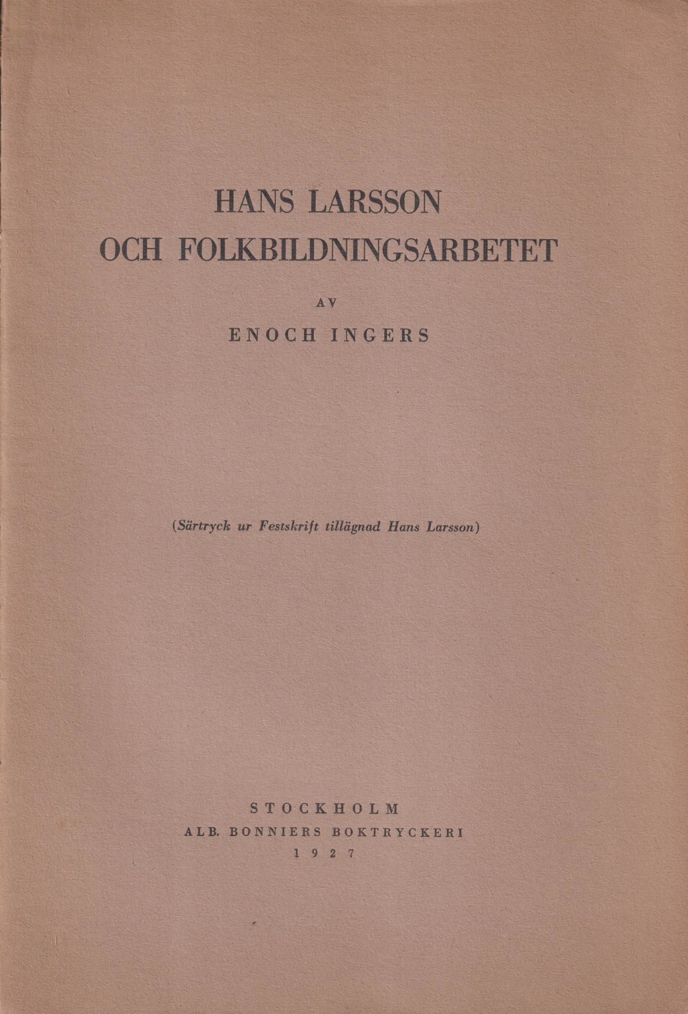 Särtryck ur ‘Festskrift tillägnad Hans Larsson den 18 februari 1927. Studier och uppsatser överräckta på sextiofemårsdagen av kolleger och lärjungar’.