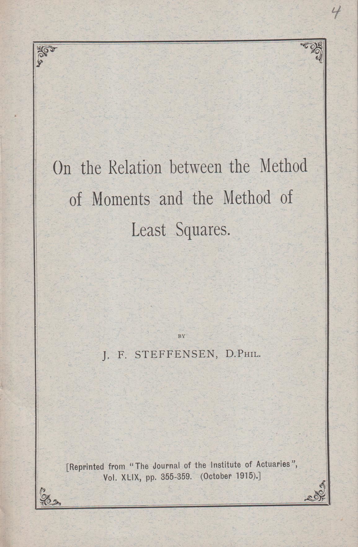 On the Relation between the Method of Moments and the Method of Least Squares. By J.F. Steffensen.