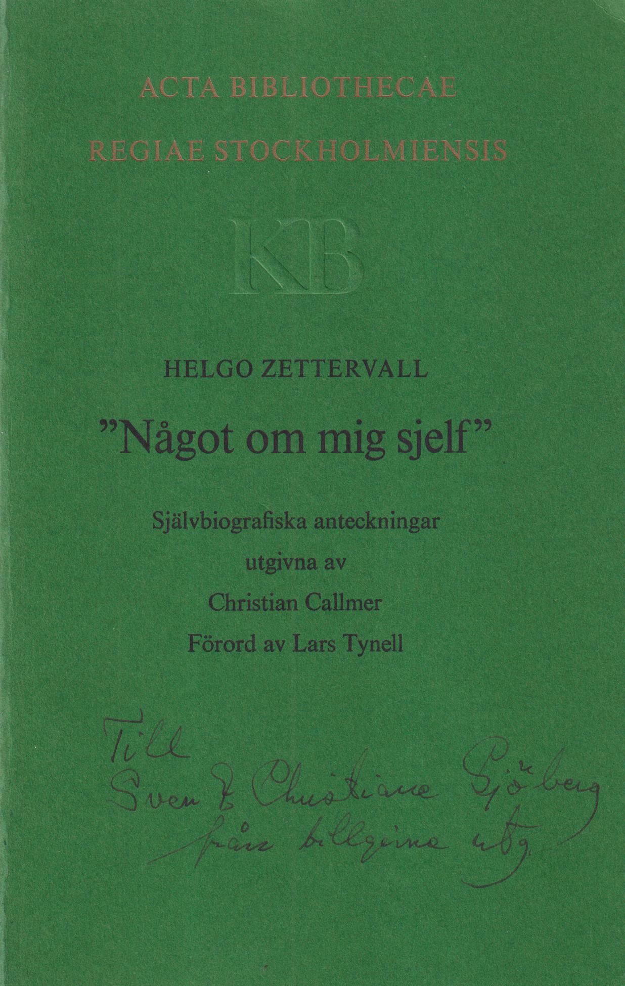 ‘Något om mig sjelf’. Självbiografiska anteckningar utgivna av Christian Callmer. Förord av Lars Tynell.
