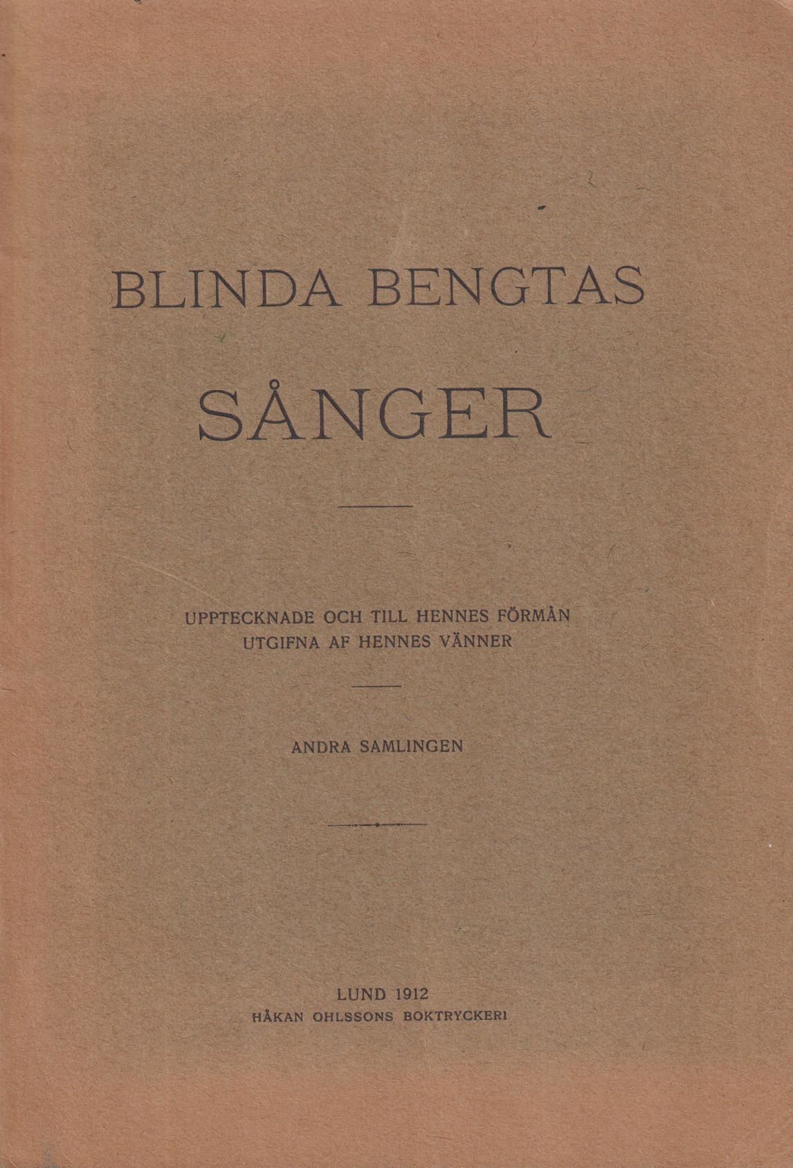 Blinda Bengtas sånger. Upptecknade och till hennes förmån utgifna af hennes vänner. Andra samlingen.
