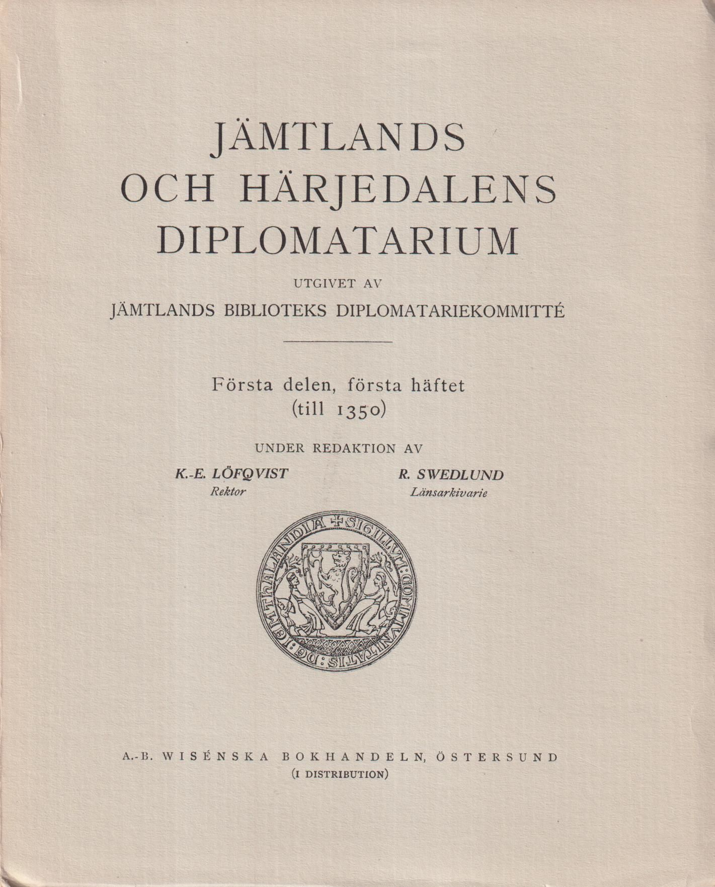 Jämtlands och Härjedalens diplomatarium. Första delen, första häftet (till 1350). Utgivet av Jämtlands läns biblioteks diplomatariekommitté.