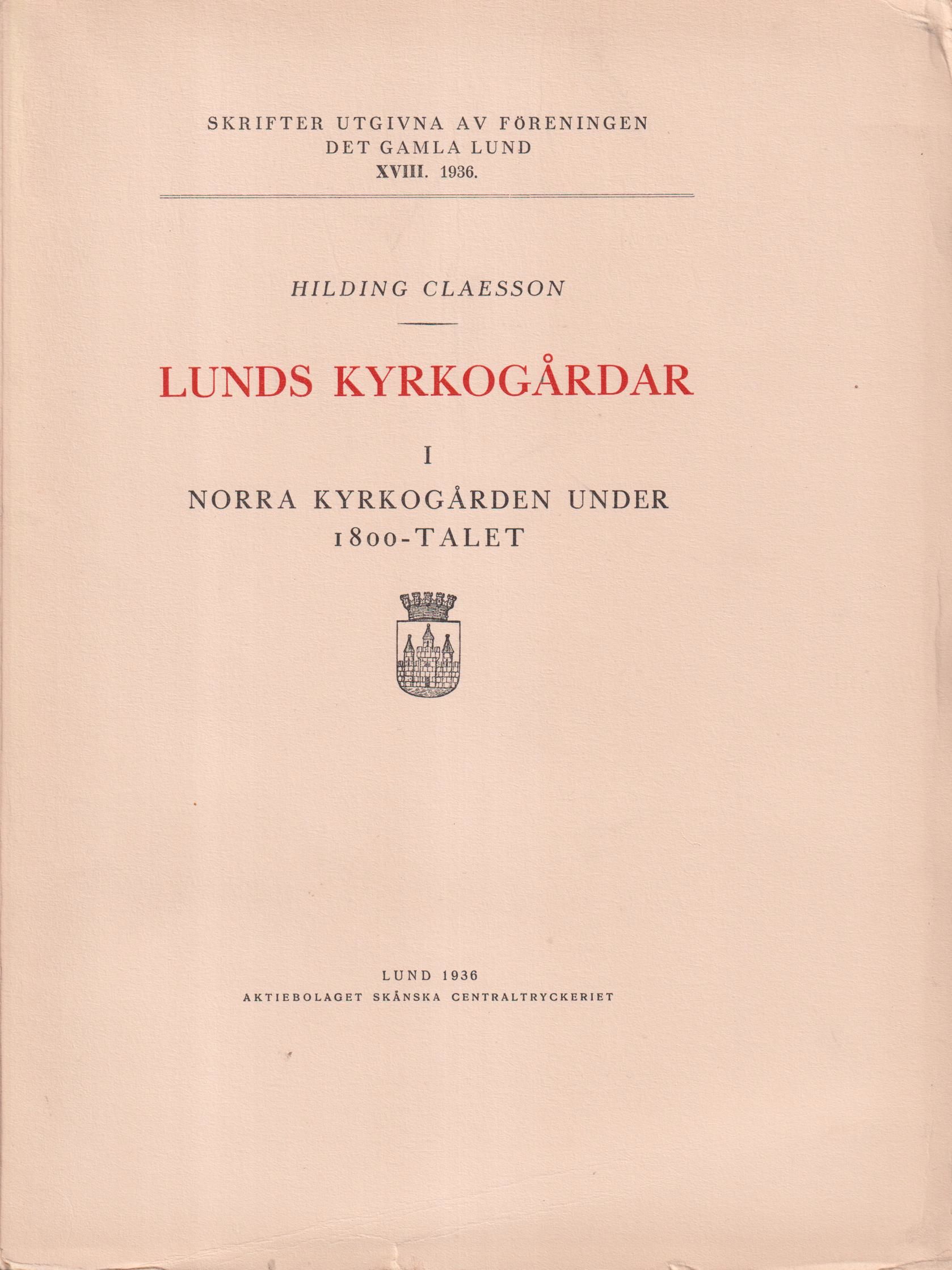 Skrifter utgivna av Föreningen Det gamla Lund 18 (1936). Innehåll: Lunds äldre kyrkogårdar; Kyrkogårdarna flyttas ut från städerna; Anläggningen av Norra Kyrkogården förberedes; Norra Kyrkogården inviges; Norra Kyrkogården under åren 1817-1830; Ny kyrkogård eller utvidgning av den Norra (Perioden 1825-1870); Norra Kyrkogården 1871-1890; Kyrkogårdsutvidgningarna under de senaste 50 åren; Källskrifter och litteraturförteckning; Efterskrift.
