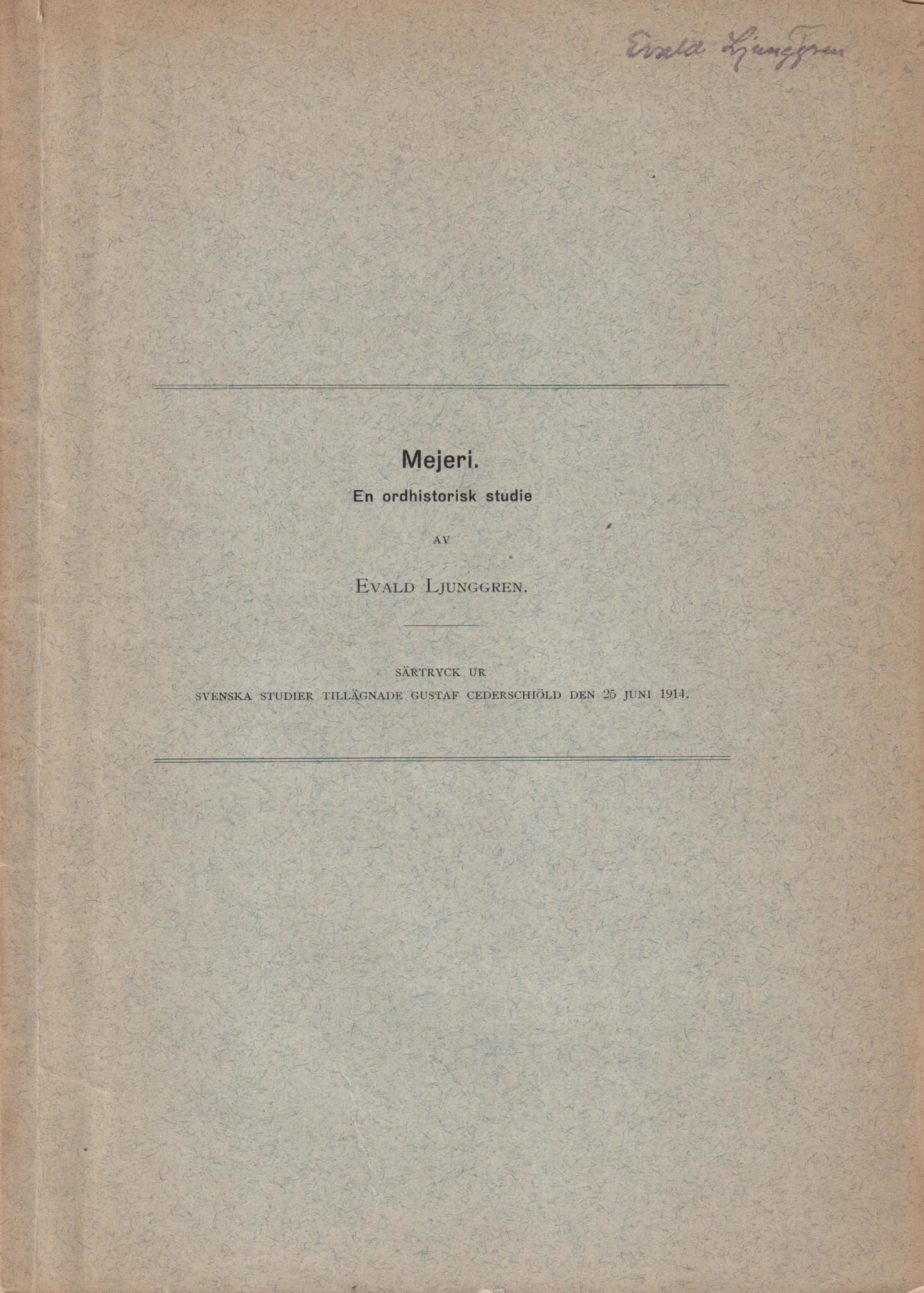 Mejeri. En ordhistorisk studie [= omslagstitel].