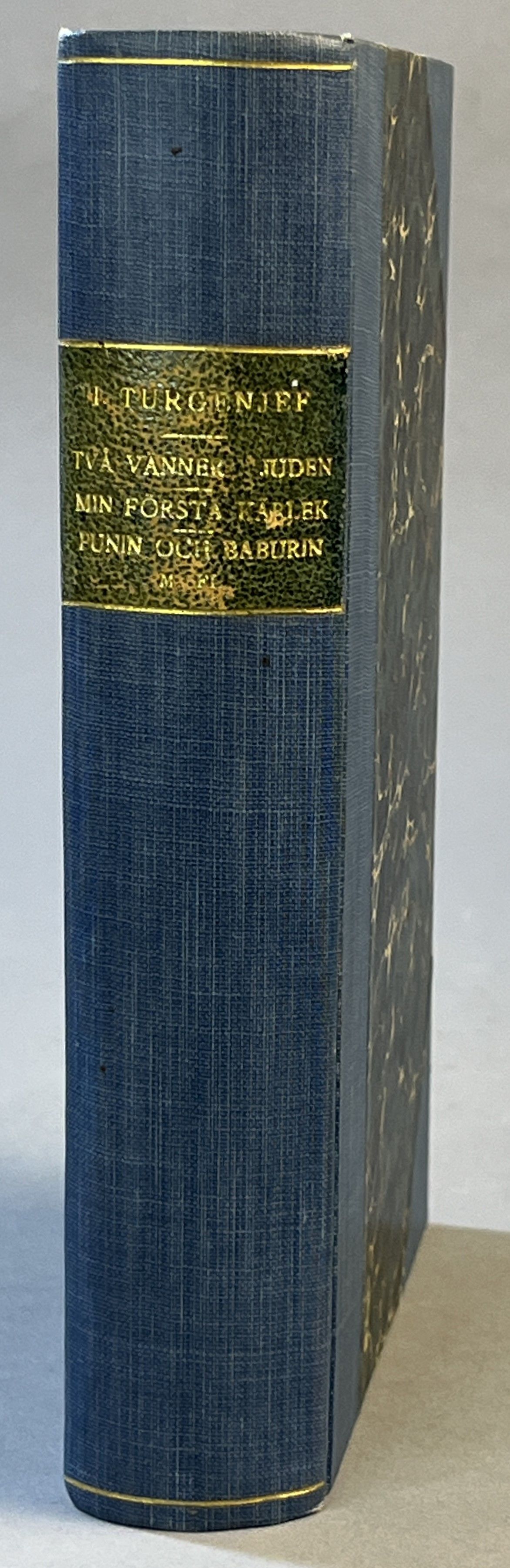 Två vänner. Juden. Min första kärlek. Berättelser. [bunden med:] Punin och Baburin. Brigadgeneralen. En slagskämpe. Pasinkof. Berättelser. Från ryskan öfversatt af -K- [Herman N. Almkvist]. [Utg. av] P.A. Norstedt & Söners förlag.