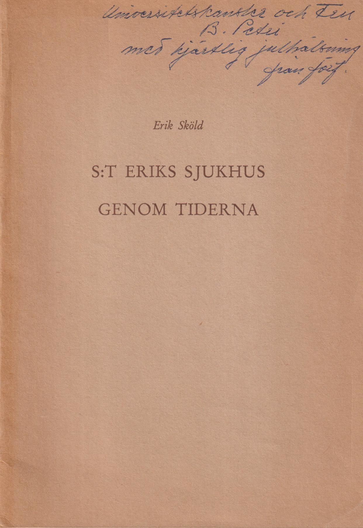 Stockholm, AB Gustaf Lindströms Boktr., 1961. 8:o. 15, (1) s. Illustrerad. Klammerhäftad med styvt tryckt pappersomslag. Första och sista sidan mörkande pga det trähaltiga omslaget. Tillskrift ‘Universitetskansler och Fru / B. Petri / med hjärtlig julhälsning / från förf.’ på främre omslag.