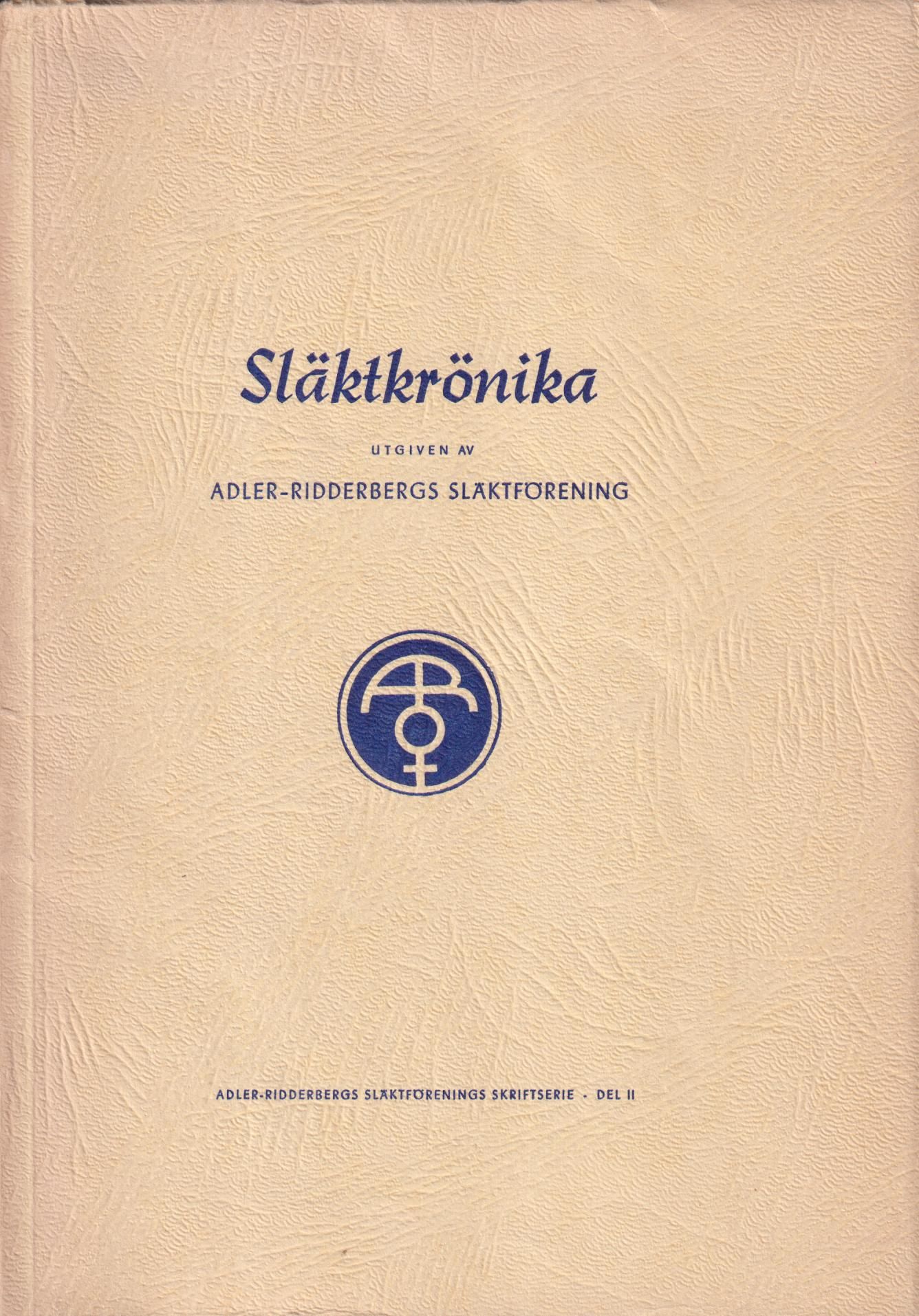 Adler-Ridderbergs släktförenings skriftserie. Omslagstitel ‘Släktkrönika. Utgiven av Adler-Ridderbergs släktförening’.