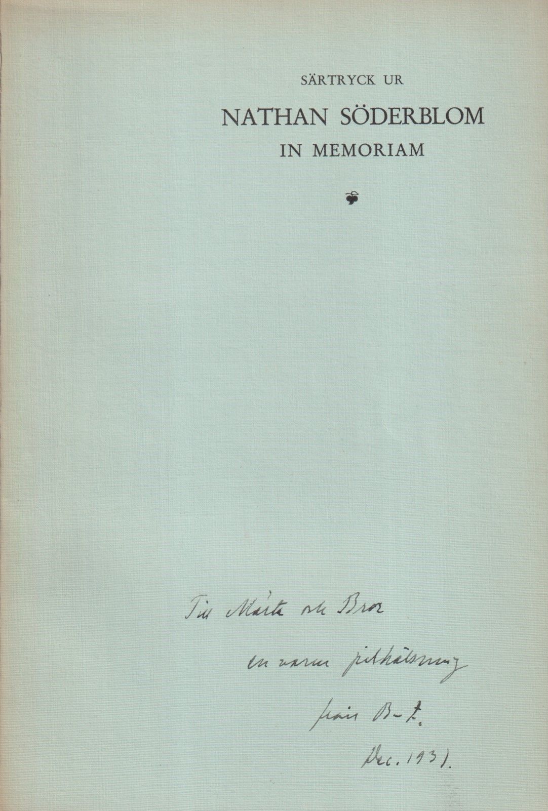 Särtryck ur ‘Nathan Söderblom in memoriam’.
