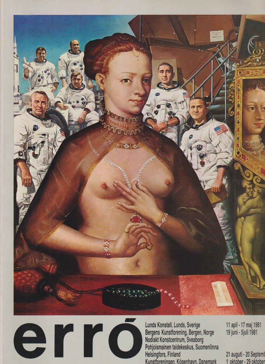 Erró. Lunds Konsthall 11 april - 17 maj 1981. Bergens Kunstforening 19 juni - 5 juli 1981. Nordiskt Konstcentrum, Sveaborg 21 augusti - 20 september 1981. Kunstforeningen, Köpenhamn 1 oktober - 29 oktober 1981.