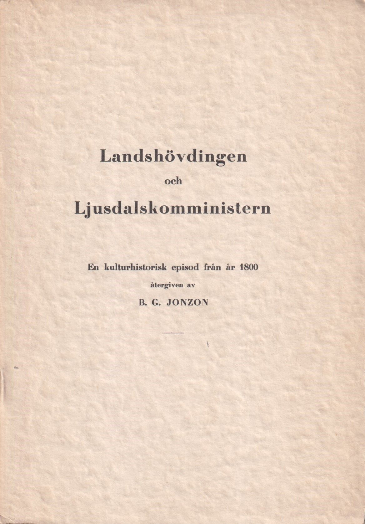 Landshövdingen och Ljusdalskomministern. En kulturhistorisk episod från år 1800 återgiven av B.G. Jonzon.