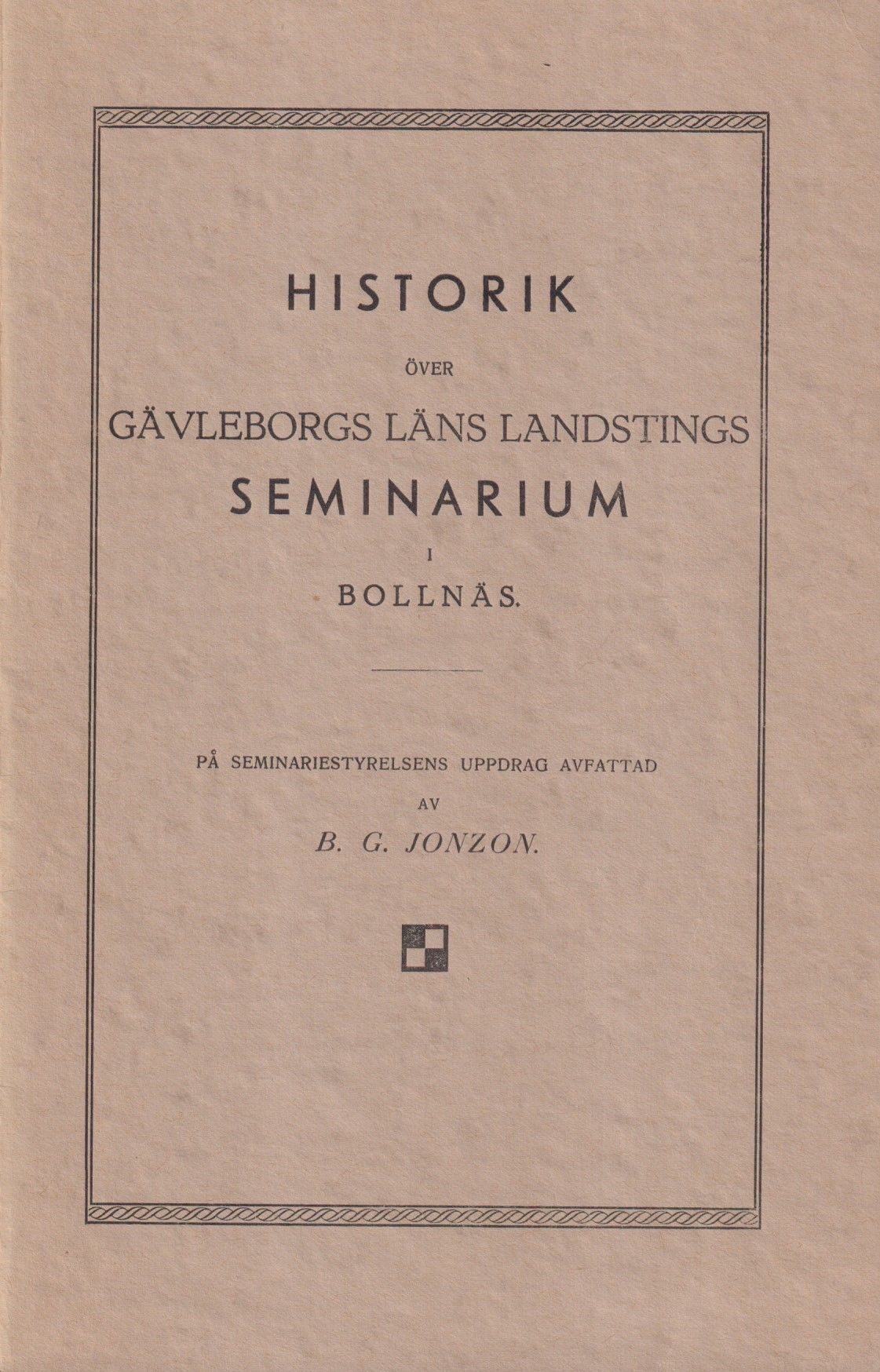 Historik över Gävleborgs läns landstings seminarium i Bollnäs. På seminariestyrelsens uppdrag avfattad av B.G. Jonzon.