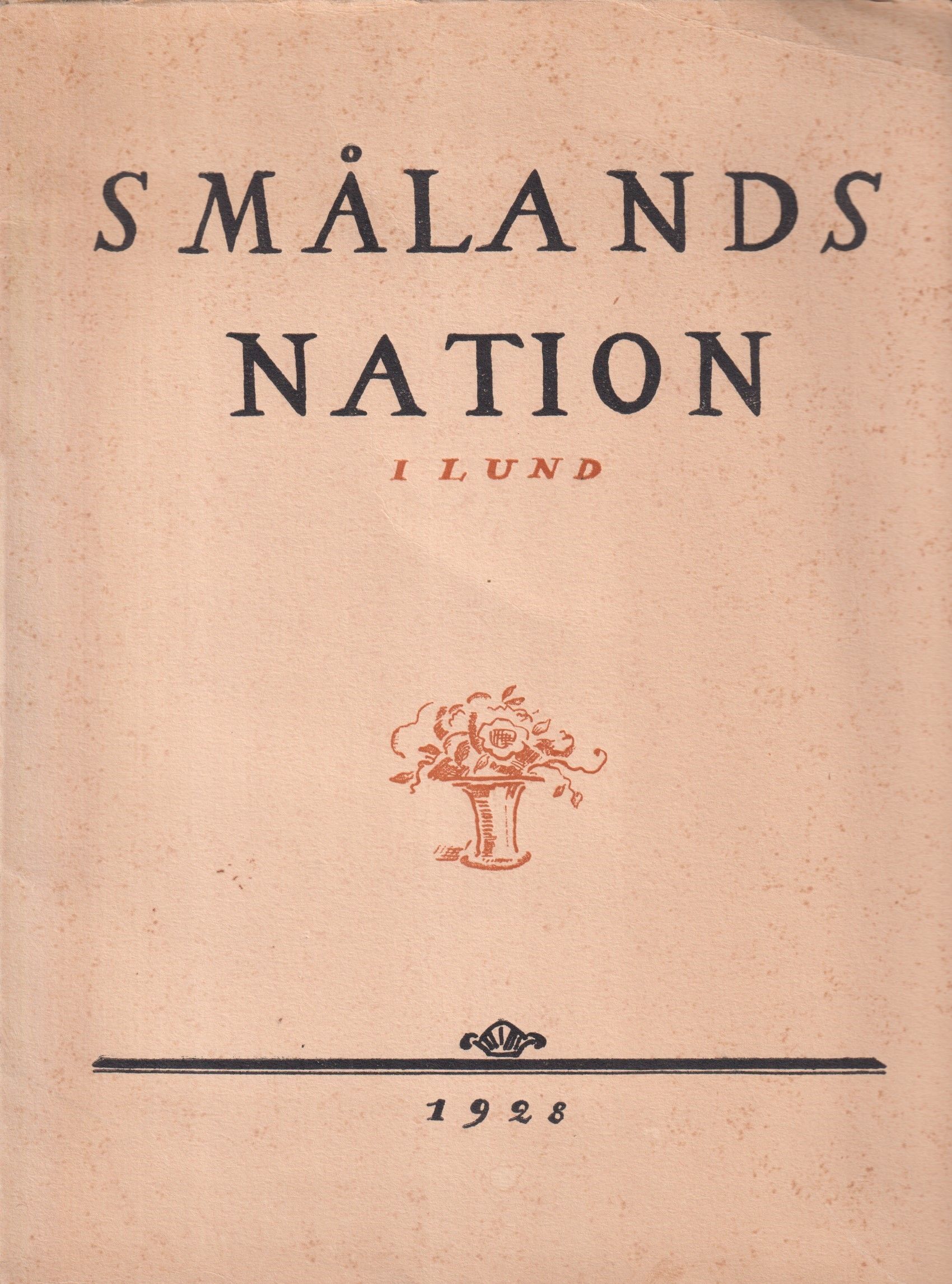 Smålands nation i Lund ht. 1927-vt. 1928. Tillägnar Ewert Wrangel detta album vid hans avgång ht. 1928 från ett mer än 25-årigt inspektorat i nationen. [Porträttalbum].