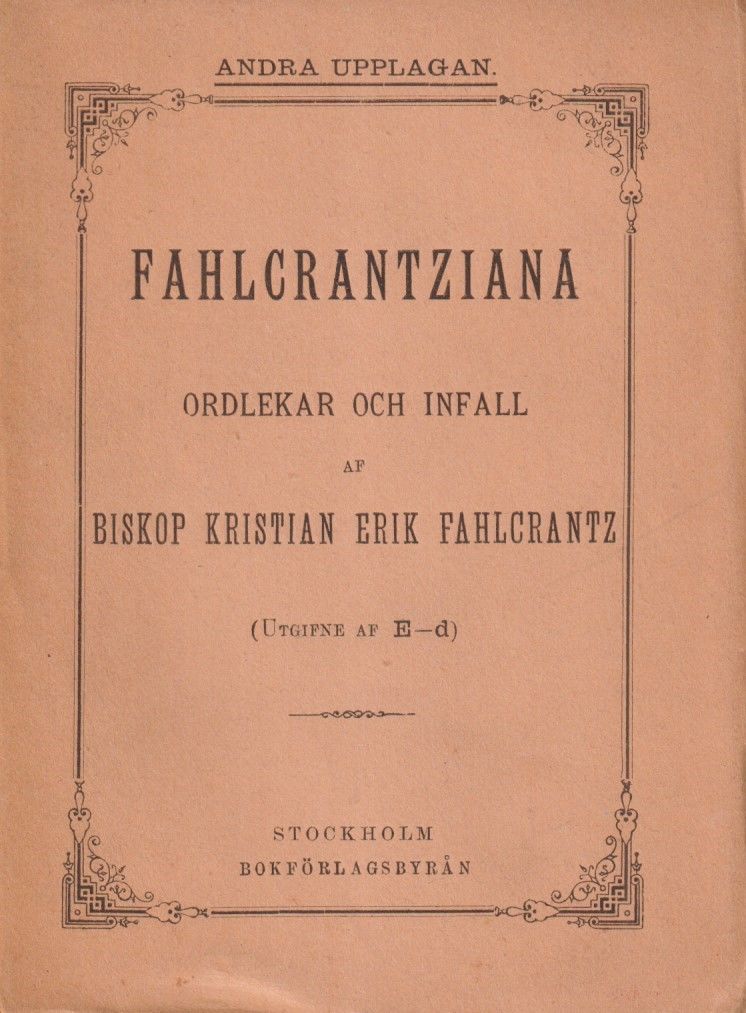 Fahlcrantziana. Ordlekar och infall af biskop Kristian Erik Fahlcrantz (utgifne af E-d) [gm] Bokförlagsbyrån.