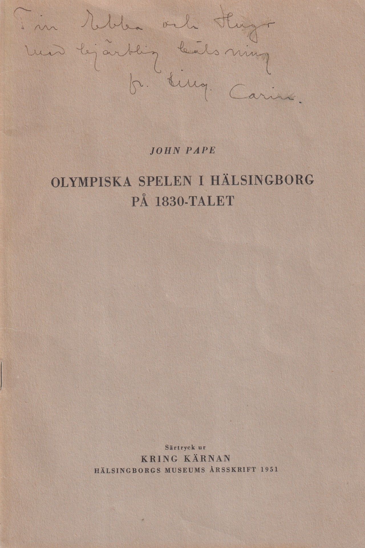 Olympiska spelen i Hälsingborg på 1830-talet. Ett blad ur svenska idrottens historia [= rubrik].
