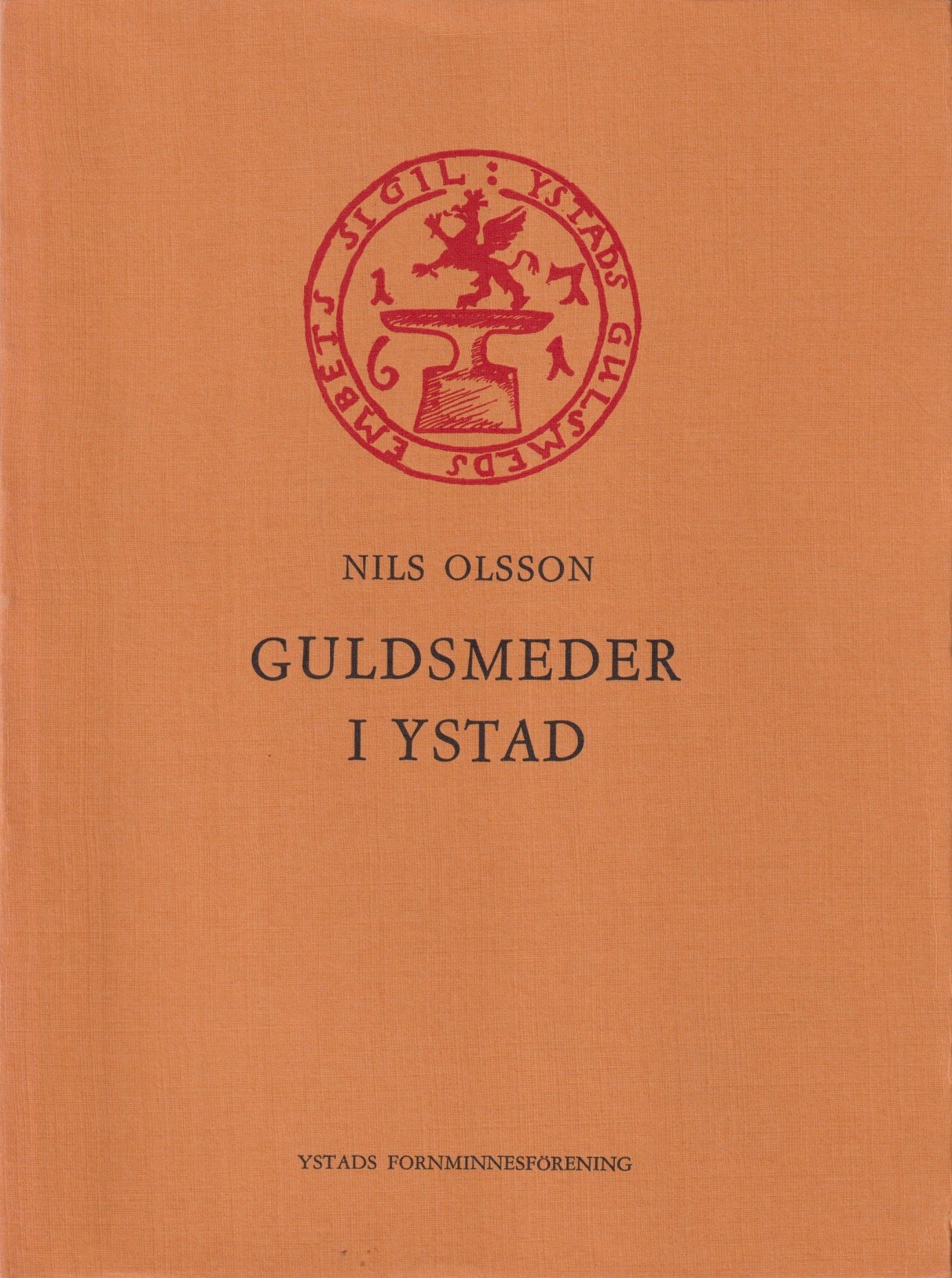 Ystads fornminnesförenings skrifter 13. Tryckt på konsttryckpapper i 1200 exemplar. Innehåll: Ämbete och skrå; Stadens guldsmeder; Lärlingar och gesäller; Guldsmedsyrkets vanskligheter; Spridningen av kyrkligt silversmide; Litteraturanvisningar; Personregister.