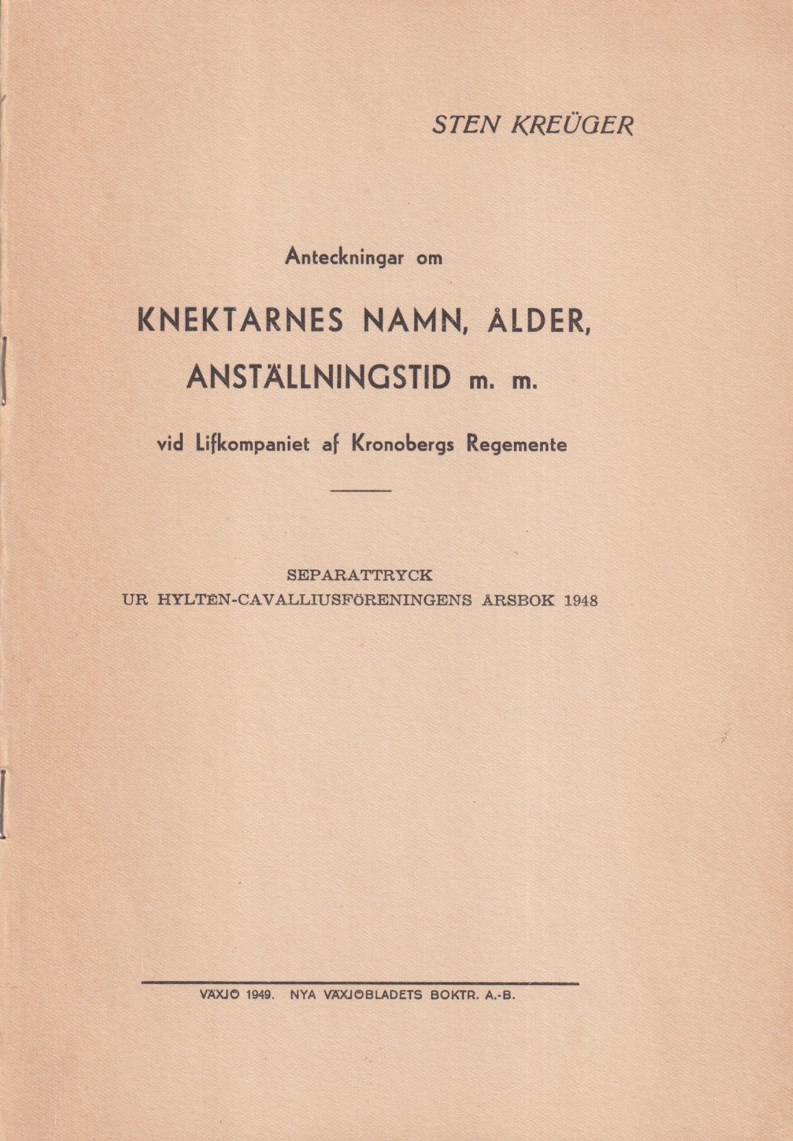 Anteckningar om knektarnes namn, ålder, anställningstid m. m. vid Lifkompaniet af Kronobergs regemente.