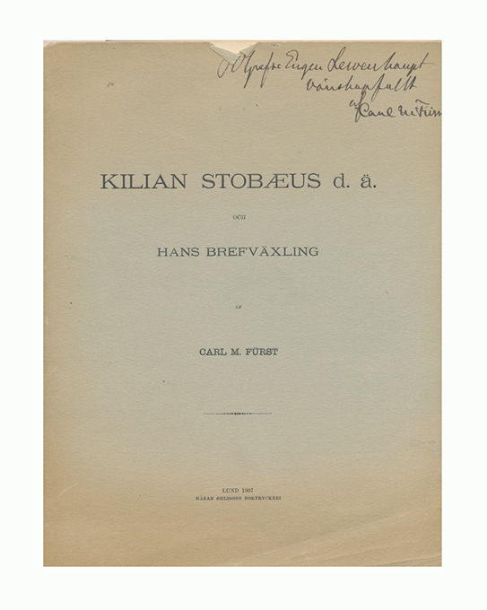 Lund, 1907. Porträtt,151,(1) s. Häftad. Omslaget nött, med revor och skadad rygg samt delvis blekt. Med dedikation till Eugène Lewenhaupt. Från Säbylunds bibliotek.