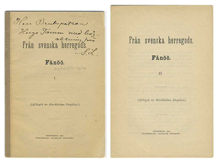 Från svenska herregods. Fånöö. (Aftryck ur Stockholms dagblad). I-II.
