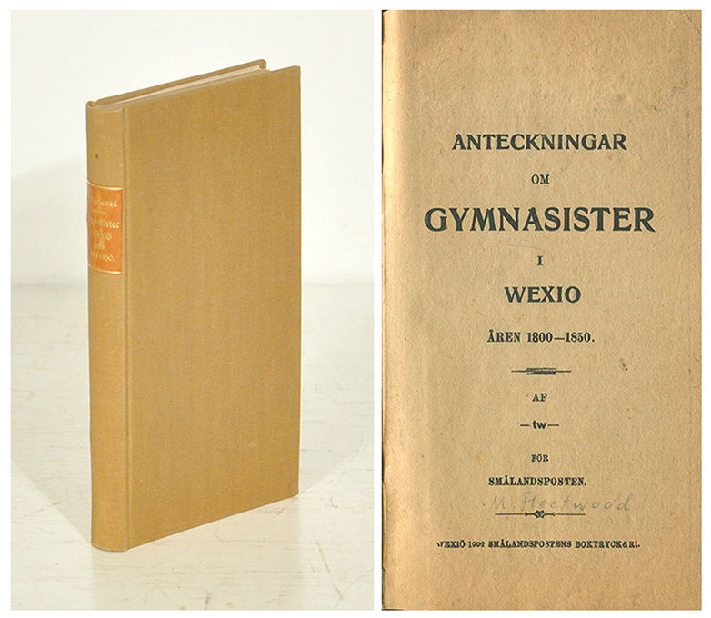 Växjö, 1902. 208 s. Brunt klbd från 1900-talets mitt med en aningen skavd titeletikett i skinn och en minimal fläck på ryggen. Pappret lite bruntonat. Urklipp från antikvariatskatalog inklistrat på bakre pärmens insida.