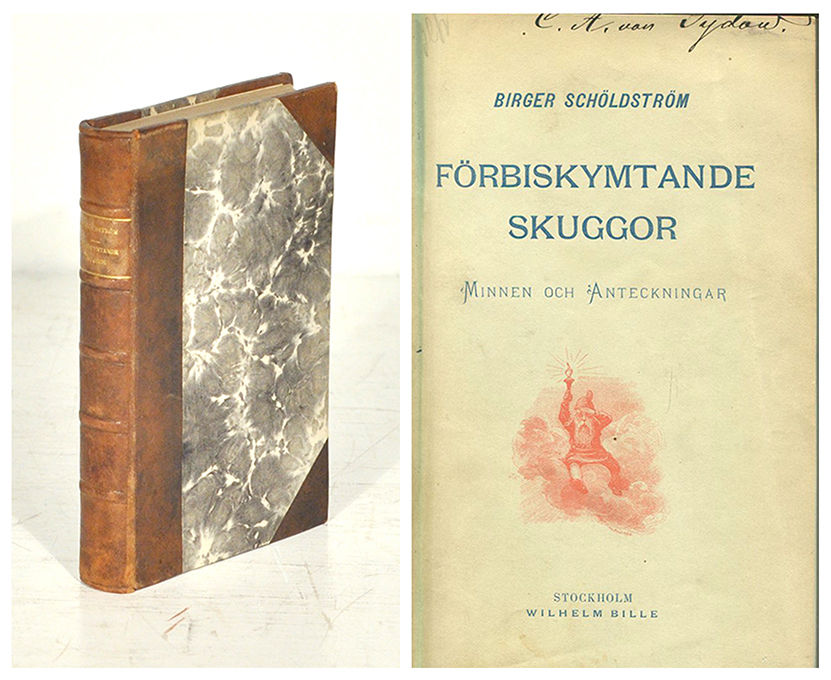 Sthlm, 1883. (4),265 s. Något nött brunt hfrbd med upphöjda bind och stänkta snitt. Medbundet främre omslag, vilket är lätt solkigt. Ryggen något flammig. Svaga fuktfläckar på de två första bladen och i marginalen t.o.m. s. 38. Omslaget med C. A. von Sydows beskurna namnteckning.