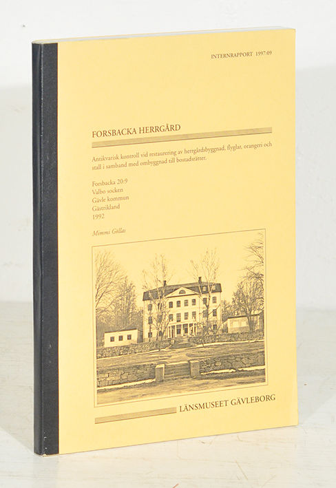 Forsbacka herrgård. Antikvarisk kontroll vid restaurering av herrgårdsbyggnad, flyglar, orangeri och stall i samband med ombyggnad till bostadsrätter. Forsbacka 20:9 - Valbo socken - Gävle kommun - Gästrikland - 1992.