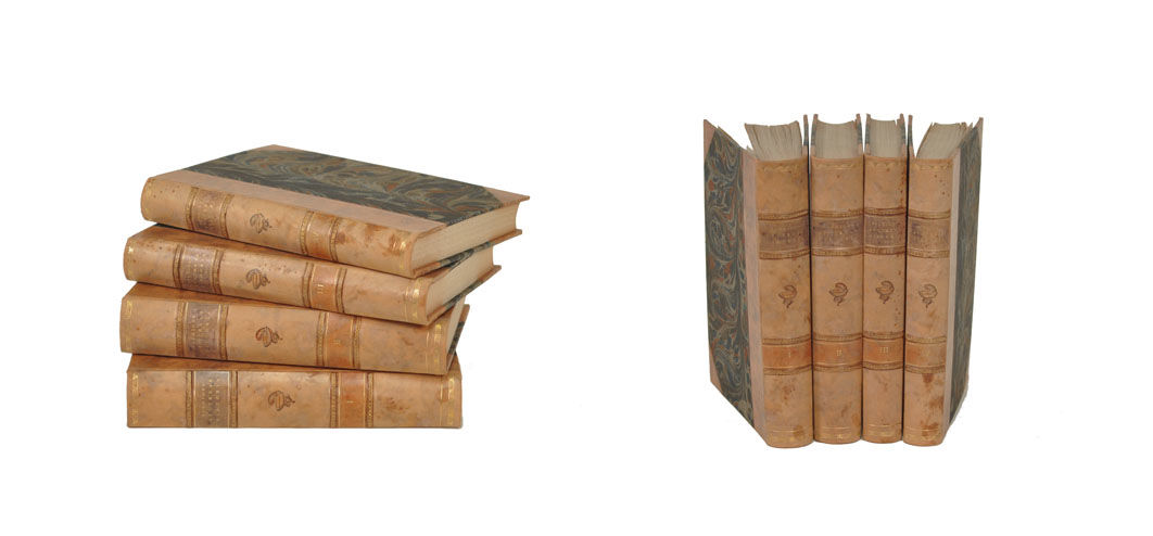 Sthlm, 1910-27. (2),676 + (2),677-1356 + (2),1357-1878 + (2),1879-2365,1-36 s. Fyra ngt nötta ohfrbd med trevlig ryggdekor. Ryggarna lätt blekta och med några fläckar.