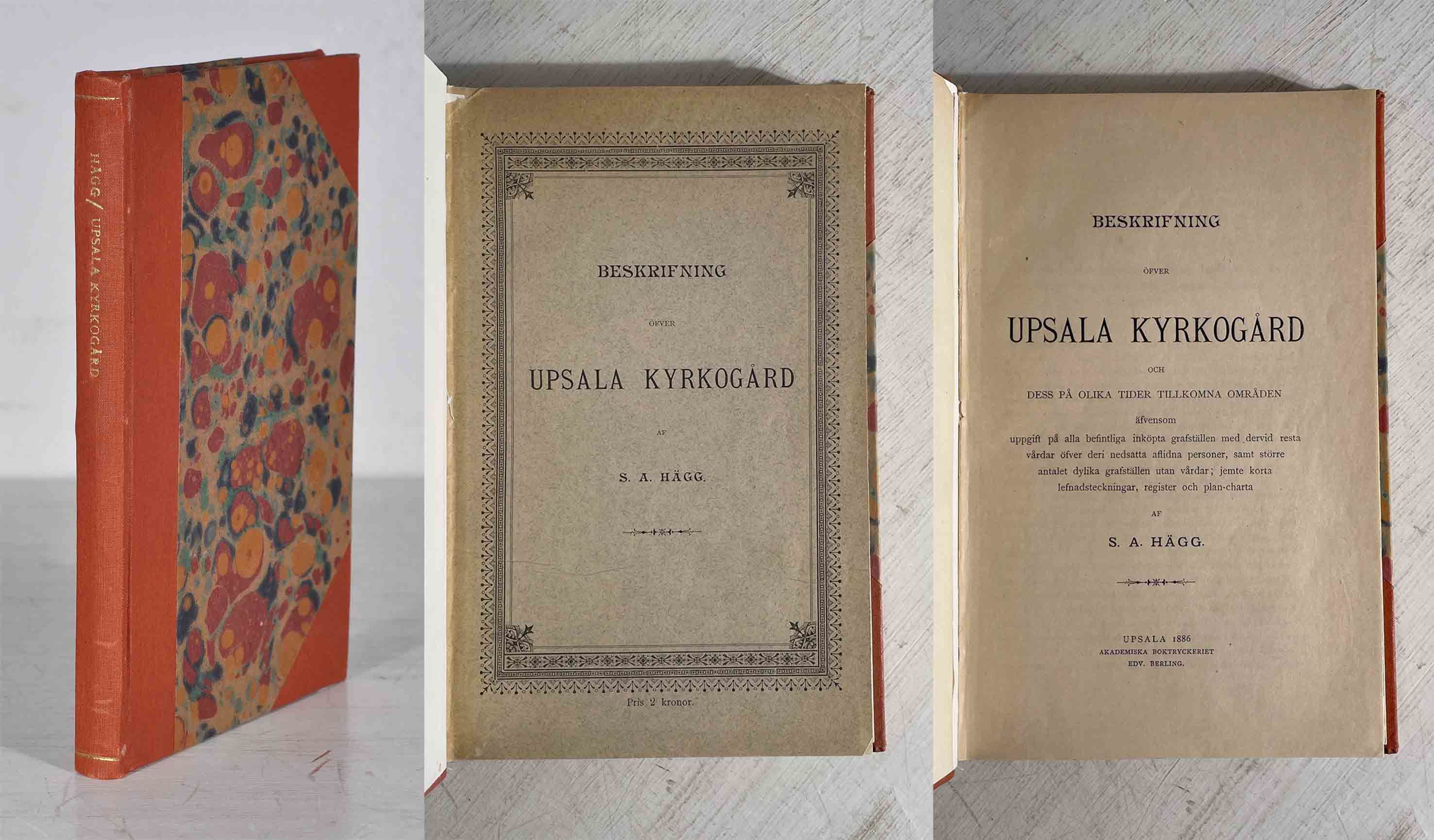 Beskrifning öfver Upsala kyrkogård och dess på olika tider tillkomna områden äfvensom uppgift på alla befintliga inköpta grafställen med dervid resta vårdar öfver deri nedsatta aflidna personer, samt större antalet dylika grafställen utan vårdar; jemte korta lefnadsteckningar, register och plan-charta.